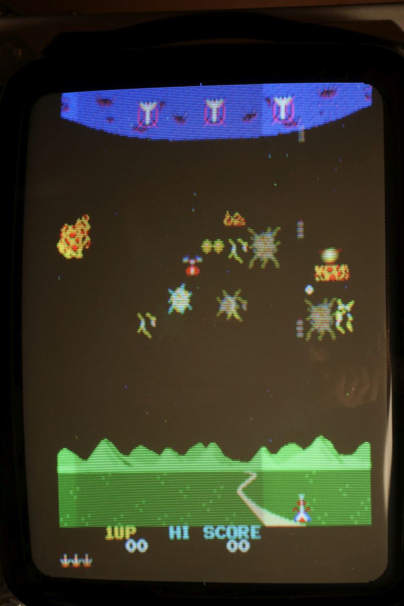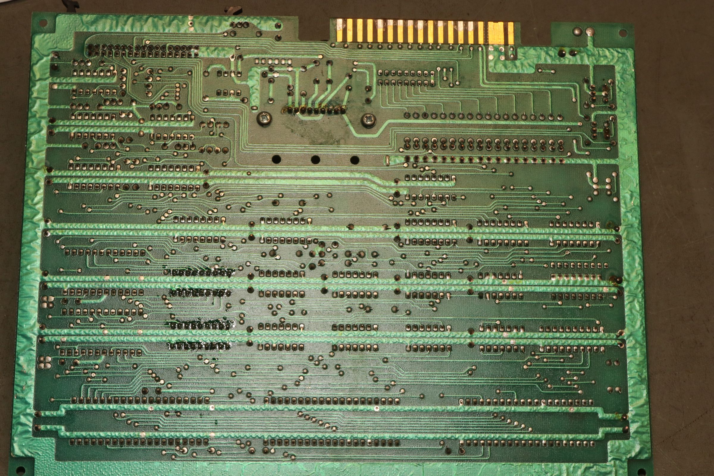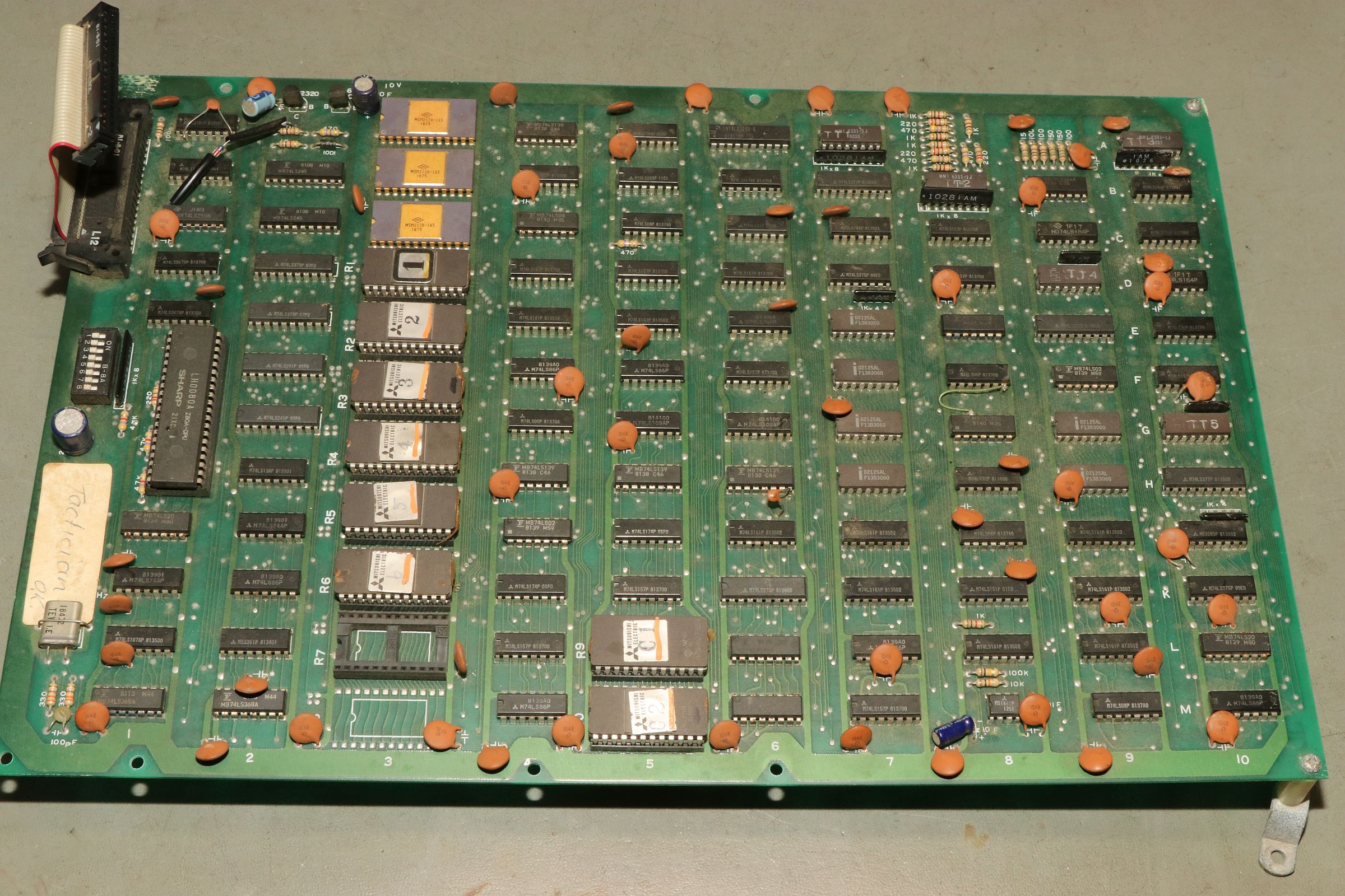 25.11.2025 {Tactician} Nach zwei Fehlschlägen tut ein Erfolg mal wieder richtig gut. Aber ein Schritt nach dem anderen. Mich erreichte eine Tactician ohne Ton, ein seltenes und ziemlich unbekanntes Spiel von Konami. Zu Tactician findet sich kein Schaltplan, aber Loco-Motion hat fast den selben Aufbau - Die Soundplatine ist sogar identisch. Das Bild war gut. Tactician sieht man nicht alle Tage: Langer Suche kurzer Sinn: der Sound-Z80 lief pegelmäßig ganz gut, der Ton war aber völlig stumm. Am Verstärker lag es nicht, der zirpte leise vor sich hin. Nach längerem Messen fiel mir auf, das vier von acht Datenbits ziemlich schlapp aussahen. Außerdem hängte sich der Z80 immer mal wieder auf. Vier Bit von acht? Das schreit förmlich nach 2114 RAMs. Huckepack hatten wir plötzlich Ton! Nicht gut, aber schon fast richtig. Ich habe vorsichtshalber gleich beide gewechselt: Die guten 2114 aus Keramik halten hoffentlich ewig! Und nachdem ich dann auch noch einen der Soundprozessoren gewechselt hatte, war wieder alles gut! Hier noch ein paar Impressionen der Platine. Diese vielen PROMs übersieht man leicht - sie sind auch nicht gesockelt. Die Soundplatine in sehr hoher Auflösung: Der Vollständigkeit halber auch von unten: CPU und Video in Hi-Res: Und hier das ganze Ensemble: |