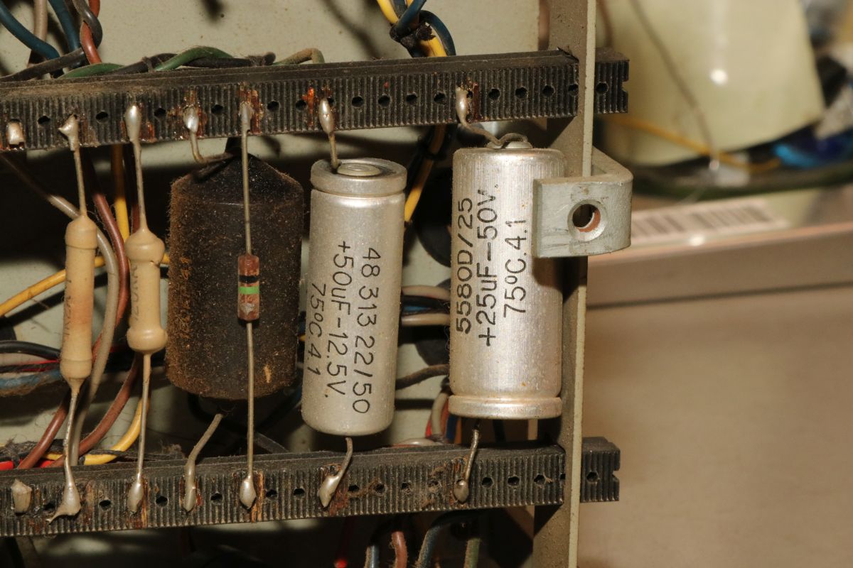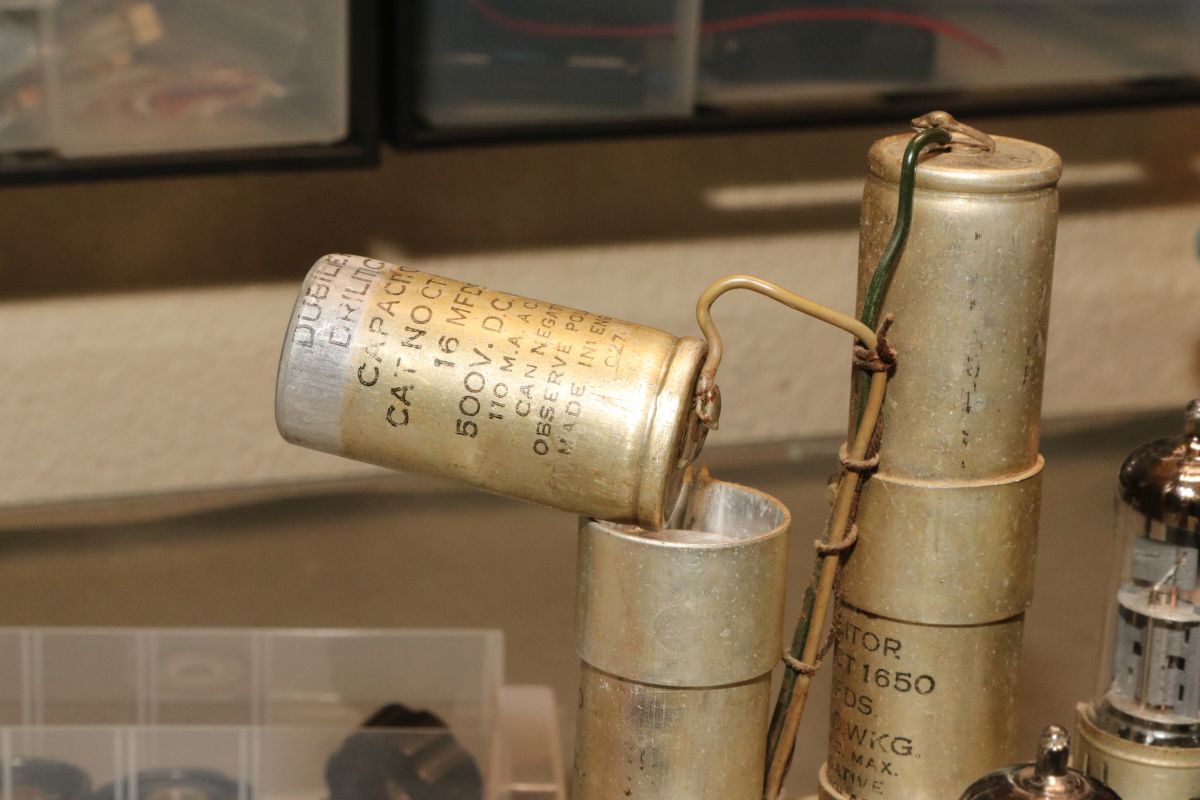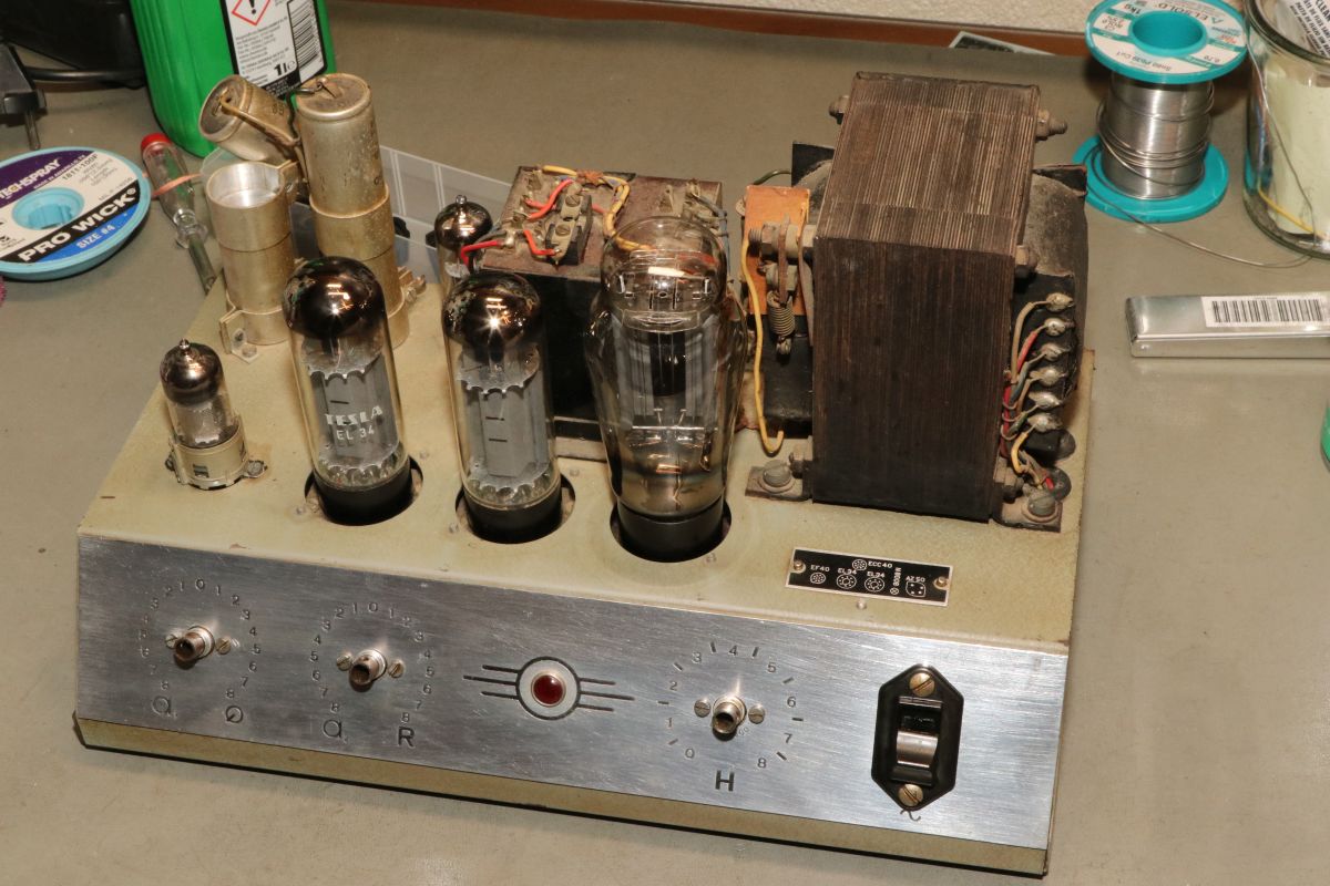 09.01.2026 {Philips 2848-04} Martin G. hat mir ein tolles Exponat quasi als vorgezogenes Weihnachtsgeschenk geschickt: einen Philips 2848-04 Mono-Röhrenverstärker von 1951 in etwas undefiniertem Zustand. Glücklicher Weise hat es nicht mal der Paketdienstleister geschafft, die (separat gut verpackten) Röhren zu zertrümmern. Alles ist heil bei mir angekommen! Nach einer ersten Reinigung sieht das ja mal ganz gut aus: Das Gehäuse und die Seitenabdeckungen fehlen, dann ist halt die Lüftung auch besser... Mache ich mir jetzt viele Gedanken oder schalte ich einfach mal ein? Ich entscheide micht für den harten Weg: der Netzschalter will nicht mitspielen - korrodiert. 100 Schaltspiele später ist der Übergangswiderstand auf wenige Milliohm gesunken - es kann losgehen. Bekloppt wie ich nun mal bin, widme ich mich erst einmal der Restauration der Frontplatte. Wer will schon ein unschönes Gerät testen? Die Frontplatte ist toll: die Beschriftung ist eingefräst, somit kann man einfach mit feiner Stahlwolle über die Platte gehen, ohne die Farbe zu entfernen! So, jetzt kann es eigentlich losgehen, aber die Glättungselkos machen mir schon Sorgen. 75 Jahre Elko kann schon daneben gehen und dann knallt es zuweilen. Im Motorraum sieht alles gut aus. Die Niederspannungs-Elkos sind selten problematisch. Eine Messung ergibt: alles im Soll. Die Folien-Kondensatoren sehen komisch aus, das muss aber so. Die sind halt sehr antik... Komische Bauform - so lang... Veräppelt! Das sind immer zwei Kondensatoren in der Mitte an Masse angebunden. 16µF/500V - sowas ist mittlerweile recht selten geworden. Aber hey, die Kapazität ist super! Der ESR ist allerdings ... nicht Schaltnetzteilgeeignet... Weil die Elkos noch halbwegs gut erscheinen, baue ich sie wieder zusammen. Der Blick auf die Rückseite zeigt, dass sowohl Netzeingangsspannungsbereich als auch Ausgangsimpedanz in weiten Bereichen eingestellt werden kann. Für den ersten Test stelle ich den Spannungsbereich auf 240V. Die Pufferelkos müssen zwingen formiert werden, die ziehen nach 75 Jahren erst mal einen extrem hohen Gleichstrom und werden heiß. Man kann das schonend mit wenig Spannung und viel Zeit machen oder ungeduldig, so wie ich: Einschalten und die Elkotemperatur testen. Die Türme werden nach wenigen Minuten über 40°C warm - also abschalten und auskühlen lassen. Wenn man das dan 4-5 Zyklen durchgemacht hat, erwärmen sich die Elkos nicht mehr. Sehr erstaunlich! Wenn man das nicht beachtet, fangen die Elkos an zu kochen und platzen. Nach einer Stunde ist der Verstärker bereit für den ersten Test. Der Ausgangsübertrager hat zur Sicherheit sogar eine Funkenstrecke. Die schlägt dann auch an, wenn das Teil aufgrund von Übersteuerung ins Schwingen kommt und viel zu viel Strom zieht. Sieht man, riecht man. Aber der Widerstand hat es trotzdem überlebt. Fazit: der Verstärker verstärkt noch sehr gut, verzerrt aber relativ schnell, ob das an alten Kondensatoren oder verbrauchten Röhren liegt, vermag ich nicht zu sagen, da fehlen mir noch die Kenntnisse. Aber das Gerät sieht einfach schön aus und macht im Winter das Labor warm! Wie man so viel Energie verschwenden kann, nur um Wechselspannung gleichzurichten... Aber ein Halbleiter-Brückengleichrichter sieht auch nicht so gut aus! Die Kontrolleuchte hat so was Jugendstil-mäßiges... Der Ausgangsübertrager nach der Reinigung. Von 8Ohm bis hochohmiger Kopfhörer geht da alles. Die Röhrenbestückung ist vermerkt: AZ50 als Gleichrichter, EF40 als klirr- und rauscharmer Vorverstärker, ECC40 als Phasentrenner und zwei Stück EL34 als Gegentaktendstufe. Ein schönes Teil von allen Seiten: Der fette schwarze Anschluss ist der Lautsprecherausgang, da passen prima Laborstrippen mit Bananensteckern rein! Ein nettes Detail: die "Sicherung". Wenn es zu heiß wird, reißt die Lötung ab. |