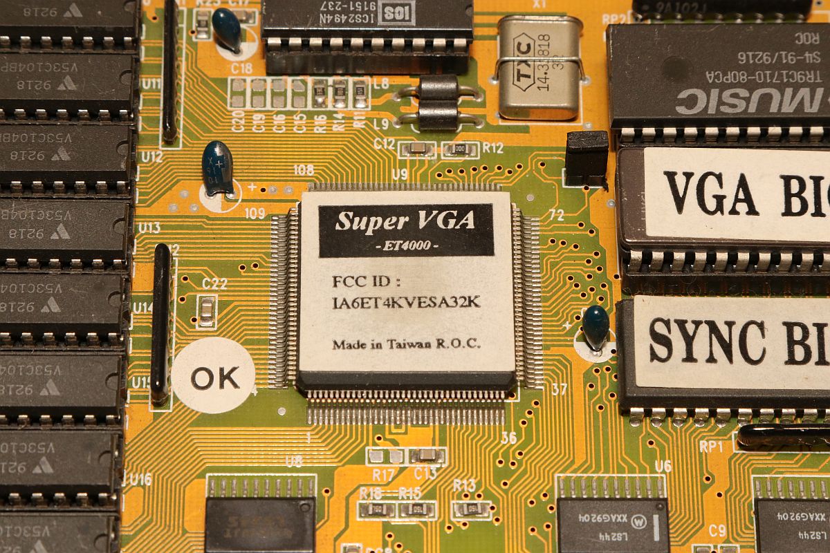 {TSENG ET4000} Wir schreiben das Jahr 1992. Die PC-Welt wird bunter und hochauflösender - grüne und bernsteinfabene Monitore gehören schon der Vergangenheit an und von den tollen CGA-Farben haben wir uns mental erholen können. EGA war nur eine kurze Episode, jetzt ist VGA angesagt. TSENG liefert die Karten, die im Nachgang als der Quasi-Standard der leistungsstärksten VGA-Karten ohne Beschleunigung gelten: ET4000. Kein 3-D, keine Shader, kein Gedöhns, dafür rasend schneller Video-RAM-Zugriff. Die TSENG ET4000 war DIE Grafikkarte, die damals jeder haben wollte. Die Karten waren eigentlich alle gleich aufgebaut: ET4000-Chip, 1MB RAM, BIOS-ROM, SYNC-ROM, programmierbarer Takt-PLL und RGB-D/A-Wandler. Diese hier besticht sogar durch einen Schreibfehler beim Sync-ROM-Aufkleber.