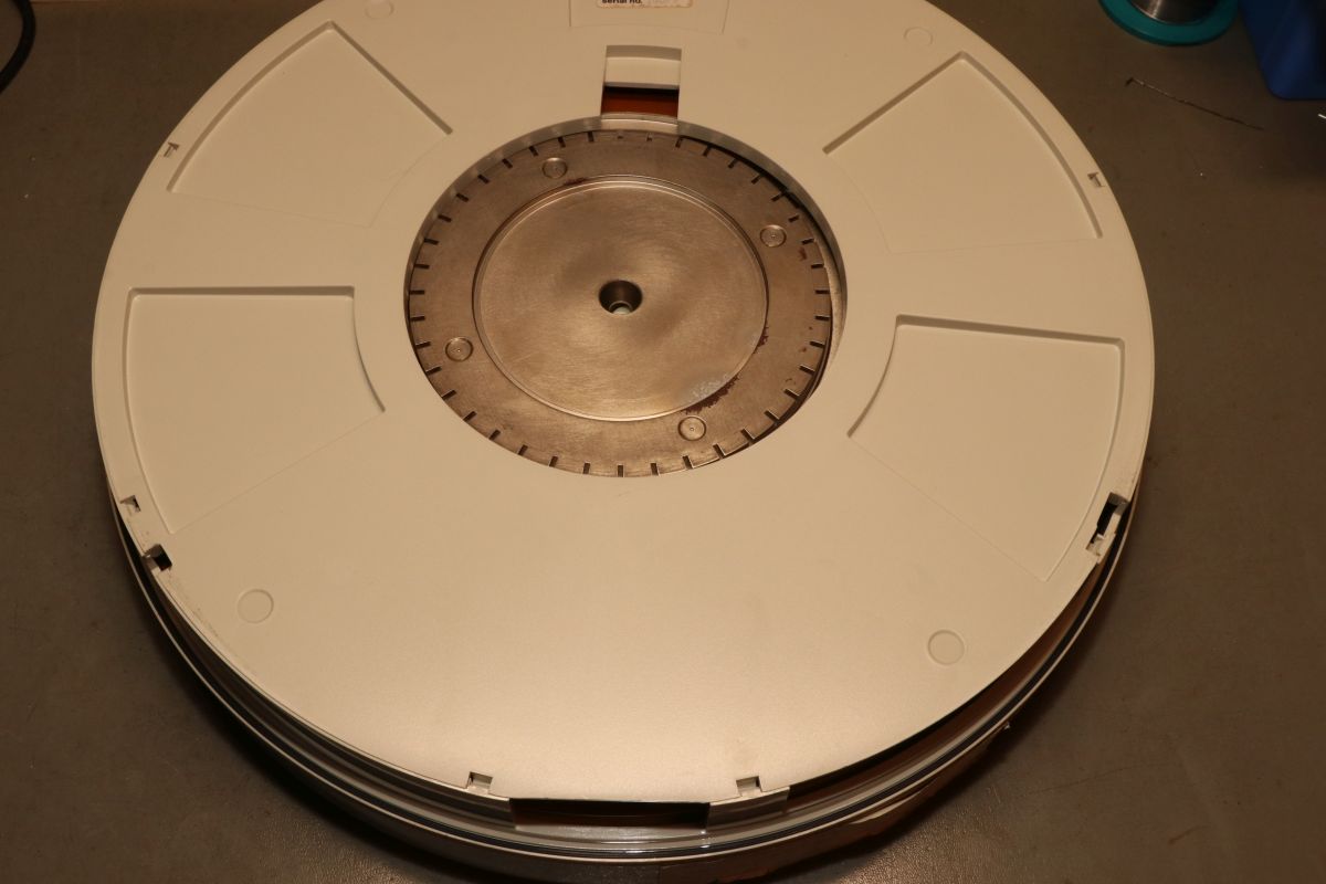 {Digital RL02K} Thiemo hat mir ein hübsches Exponat aus der Frühzeit der Datenspeicherung zukommen lassen: eine 14" Wechselfestplatte von DIGITAL, RL02K-DC, ganze 10 Mbyte auf vollen 14 Zoll Alublech...