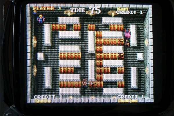 {Eine Exvania Conversion} Das Namco NA-1 System ist berühmt und berüchtigt zugleich: ein 68000er System mit separaten ROM-Boards und natürlich passenden Security-Chips, damit man nicht einfach die Spiele durch EPROM-Kopieren austauschen kann. Mittlerweile gibt es dank extrem heller Köpfe alle ROMs auch in entschlüsselter Form, da kann man tolle Conversions draus basteln. Berüchtigt ist das Namco-System vor Allem aber durch seine inkontinenten SMD-Elkos! Die laufen alle (!) mit der Zeit aus und verätzen die haarfeinen Leiterbahnen und Durchkontaktierungen. Bemerkt man das nicht rechtzeitig, so ist das Motherboard zumindest unwiederbringlich verloren! Deswegen gibt es auf dem freien Markt sehr viele ROM-Boards aber kaum Motherboards, und wenn, dann defekt (aka "nicht getestet", was bei ebay eigentlich immer "Kernschrott" bedeutet...) oder extrem teuer (was defekt nicht zwingend ausschließt!). Ich bekam dank eines freundlichen Hinweises aus einem Forum ein Exemplar "Tinkle Pit" in recht gutem Zustand und deklariert als "voll funktionsfähig"... Der Audiobereich ist zuerst von der Elkopest betroffen, man merkt es am immer schlechter werdendem Sound. Dieser hier sieht noch echt gut aus, auch wenn die Pads schon langsam grau werden... Sound geht einwandfrei, Bild auch - nur um sicher zu gehen. Wenn nachher was nicht funktioniert, war ich selber schuld! Die Elkos haben schon gearbeitet... es wird dringend Zeit für einen Austausch! Unter dem ROM-Board sitzt noch ein einzelner Elko, der die Spannungsüberwachung bedient - und im Auslauffall auch grandios erledigt. Hier hat der Vorbesitzer schon erfolgreich geflickt. Aber warum zum Teufel hat er die Elkos dann nicht alle gleich getauscht? Die Lötstellen sind alle nachgelötet - die Elkos sind alle alt und undicht. Raus damit! Zwei Einzellötkolben ersetzen eine Lötpinzette... Wenn man das zusammen mit seiner Tochter macht, dann geht das unglaublich fix. Die Drecksbecher... Sauber neu verzinnt... Und nach einer sehr gründlichen Reinigung mit Bürste und Spüli (in den Vias setzt sich das Zeug auch ab! Hier hoffe ich, dass die Ätzerei ohne Nachschub langfristig aufhört!) kommen neue Elkos drauf. SMD hab ich nicht, bedrahtet tut auch, ist dicht und funktioniert. Ja, perfekt geht anders! Die kleinen Kondensatoren gehen auch in keramisch. Ein Test mit dem originalen ROM-Board zeigt: alles läuft einwandfrei! Immerhin, nichts zerstört! Jetzt müssen die ROMs raus - warum sind da welche direkt eingelötet? Mein Heißluftfön leistet ganze Arbeit. Die Alufolie schont die umliegenden Bauteile... Jetzt wird alles gesockelt. Zusammenstecken - Exvania startet nicht... was zum T... Ich stöpsel die alten ROMs drauf... Das Spiel geht. Eine Mail an den Ersteller der Decrypted ROMs beantwortet mir fix die Frage aller Fragen: der KEYCUS (Entschlüsselungs-Custom-Chip) stört speziell bei diesem ROM-Board den Bus... Kaum ist der auch rausgelötet, läuft das Spiel perfekt! Geil! Exvania - wie Bomberman, nur viel besser. Der langgehegte Wunsch meiner Tochter, sie hat selbst gelötet und alles mitgemacht, vor Allem hat sie die Platine bezahlt. Die einzige Arcade-Platine, die mir nicht gehört... Und ja, noch ein typisches Problem der Namco-Platinen: die keramischen Filter an den Eingängen verlieren gerne den Kontakt. Manche Pins lassen sich wieder festlöten, wenn es nicht klappt, dann ist Fädeldraht angesagt! Jetzt klappt auch der Zweispielermodus perfekt und der macht richtig Spaß! Hier jetzt noch die einzelnen Platinen in hochauflösender Form: |