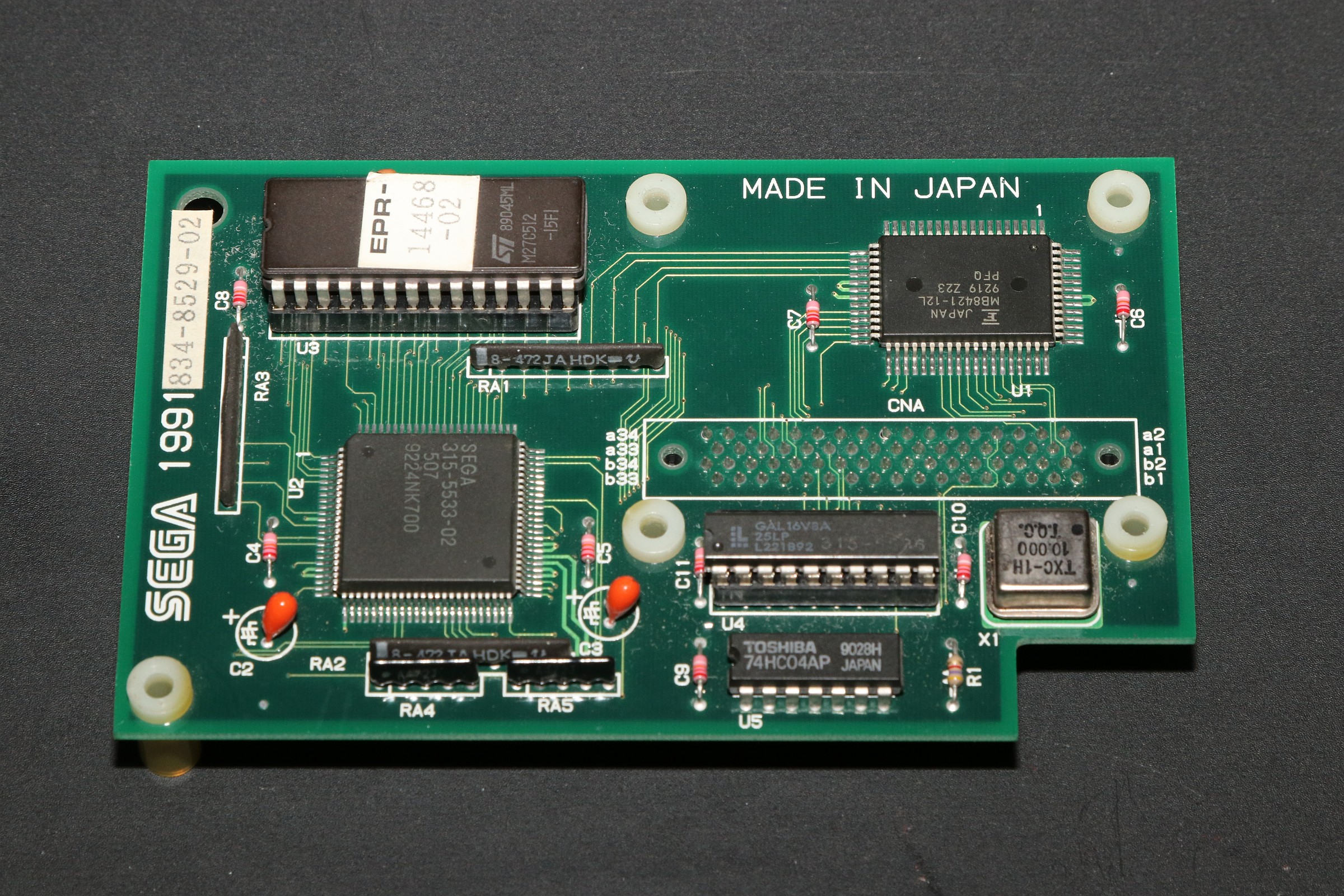 {Golden Axe II} für so etwas bin ich - so scheint es - einfach zu alt... Viel moderne Technik, SMD und THT gemischt, RAM-Bänke ohne Ende und diverse Zusatzplatinen in Sandwich-Bauweise incl. Protection-Einheit gegen Conversions... Die Sandwich-Bauweise macht einem Reparazzo das Leben zur Hölle. Auseinandergebaut könnte man messen, das Teil funktioniert aber nicht. Zusammengebaut funktioniert das Teil womöglich, man kann aber nicht messen. Danke, Sega! Hier mal das Motherboard mit Prozessor(en): Das Board für zusätzliche I/Os: Das üppige ROM-Board - hier residiert das Spiel: Und - damit es nicht zu einfach wird: das Protection-Board: So sieht das Teil aus, wenn alles sauber zusammengebaut ist: Fazit: bei diesem Patienten kann ich absolut nichts machen. Es gibt kein Bild, Sync ist da. Alle Quarz-Oszillatoren takten sauber, trotzdem ist die Hälfte der Platine tot. Grafikdaten werden keine gelesen. Ich vermute nach einem Ausflug zu Tante Google, dass die Protection irgendwie zuschlägt - Ersatzteile habe ich für so etwas gar keine, hier helfen nur bauähnliche Spenderboards. Schade, das ist immerhin eine absolut saubere Platine gewesen... {Noch ein kleiner Versuch...} auf dieser SEGA-Platine gibt es ja eine Verschlüsselung - wenn die Decryption-Unit einen Schuss hat, zeigt sich das auch oft an fehlendem Aufstart. Also habe ich flugs mal die EPROMs gegen die entschlüsselten Varianten gebrannt. Leider hat das hier auch nichts gebracht - jetzt habe ich alle Möglichkeiten ausgeschöpft! |