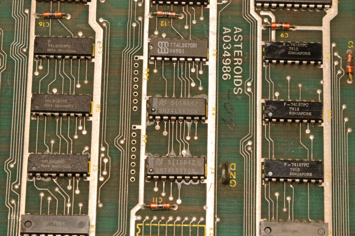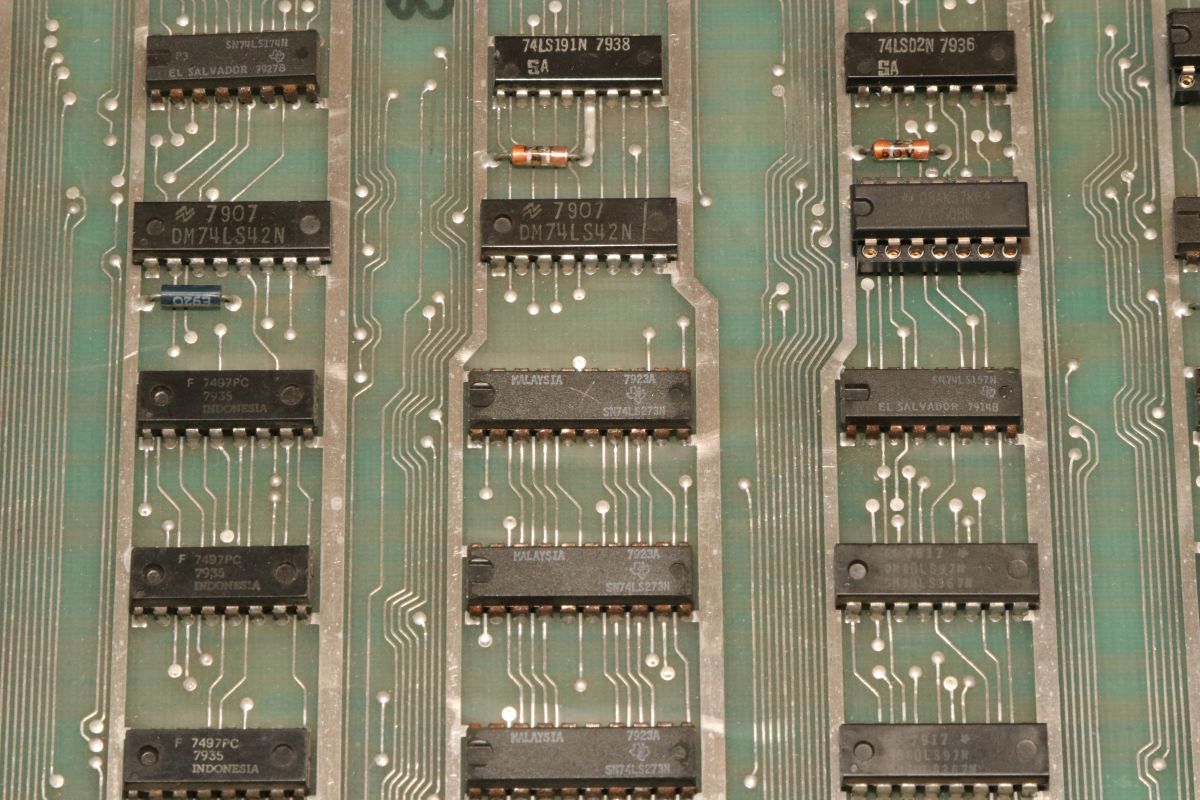 24.09.2025 {Asteroids im Doppelpack} Asteroids ist ein tolles Arcadespiel! Vektorgrafik, kaum Custom-Chips und sehr übersichtlich aufgebaut. Denkt man. Und wenn man dann zwei Platinen zur Reparatur bekommt, könnte man sich in der trügerischen Sicherheit wähnen, irgendwas zum Vergleichen zu haben. Die Wahrheit ist: ich kenne kaum ein Spiel, was sich so übel reparieren lässt, wie Asteroids. Missile Command vielleicht, oder Centipede. Ich erkenne ein Muster: Atari und alt - eine schlechte Mischung. Platine 1: Die RAMs hat schon mal wer getauscht... Die auch. Dann liegt es vermutlich nicht an den RAMs, wenn hier gar nichts geht. Platine 2: Hier gibt es keine Sockel, aber dafür ein Kreuz auf dem RAM. Die Bustreiber sind neu. Die hier auch, hat aber wohl nicht geholfen... Auch hier ist schon einiges gemacht worden - wer weiß, ob es danach besser oder schlechter geworden ist. Manchmal sind auch Reparaturen daran schuld, wenn nichts mehr geht. Diese CPU taktet immerhin, aber recht eintönig. Dazwischen legt sie sich mal schlafen, bis der WDT klingelt... Der 157er war auffällig aber leider nicht die Ursache. Ich habe endlich meinen Hilfstrafo gefunden. Die 2x18V benötigt man für die Vektorendstufen. Rustikal aber praktisch! Wir haben ein Bild - leider ohne sinnvollen Inhalt. Pieptöne gibt es auch nicht, eine Diagnose ist schwer zu geben. Manchmal ändert sich das Bild auch - ich werde mal alle verbliebenen 2114 tauschen, es scheint, als ob der Programmablauf gestört ist. Wenn beide Platinen nicht laufen, ist ein Vergleich schwierig. Ich bin gespannt! {Und es geht weiter!} Die Asteroids mit Funktion: immerhin funktioniert der NMI. Aber der ist auch Hardware-generiert. Ein geduldiger 4ms-Takt zum Bildaufbau. Die Asteroids ohne Funktion: Upps. Mein Fehler. Aber mit einem neuen 2114 läuft es genausowenig... Dafür meldet sich Kandidat 1 akustisch. Nachdem ich das Board mal komplett mit Lautsprecher verkabelt habe (immer eine gute Idee, die Asteroids sind akustisch mitteilungsfreudig, wenn sie mal anlaufen...) bekomme ich im Testmodus 4 höhere und einen tiefen Piepston. Das ist RAM N4. Das war übrigens auch der Baustein mit einem Kreuz drauf... Das RAM ist schnell getauscht. Die Asteroids sind mit dem richtigen Werkzeug sehr gut auszulöten. Das Programm startet ohne Fehler-Piep. Die RAMs scheinen in Ordnung zu sein. Wir haben ein statisches stabiles Bild. Im Testmodus kann man das Umlegen der DIP-Schalter jetzt optisch verfolgen. Außerhalb des Testmodus geht es immer noch nicht gut. Der Watchdog schlägt zu und das ist das Unangenehme bei Asteroids. Jeder Fehler im Vektor-Generator führt zum Programmabbruch und damit zum Watchdog. Gut, dass man den einfach stillegen kann. Jetzt bleibt erst mal Fehlersuche nach schlechten Pegeln. Nach einer Viertelstunde habe ich etwas gefunden. DVY5 sieht gar nicht gut aus! Ein 74191 ist mit 10 Ohm eingangsseitig viel zu niederohmig. Viele Kiloohm wären hier zu erwarten gewesen. Der Baustein ist getauscht, der Widerstand von DVY5 gegen Masse steigt auf 40 Ohm - "Not great, not terrible!". Da ist noch mehr defekt. An der Leitung hängt einiges drann, ich werde alle Teilnehmer ansehen müssen. Immerhin haben wir jetzt schon ein Bild, was fast nach Gameplay aussieht! Der Pegel hat es ja auch schon fast geschafft... Mich würde mal interessieren, woher dieser Schaden kommt, der diverse IC-Eingänge hat durchlegieren lassen... Kurzschluss? Überspannung? Jetzt muss ich erst mal 7497 bestellen, den habe ich nicht im Lager - braucht man so gut wie nie! Außer bei Asteroids... {Und es geht noch weiter!} Die Spezialbauteile sind da! 7497 ersetzt - die Pegel sehen gut aus! Plötzlich sieht auch das Vektorbild interessanter aus, auch wenn noch nichts richtig läuft... Zumindest wird hier mal was berechnet und dargestellt: Das Vector-Generator-ROM hat anormale Pegel auf den Datenleitungen. Da stimmt was nicht: Ich tausche den alten Bustreiber... Hier hat man daran gedacht, zwei verschiedene Typen einsetzen zu können. Ich wähle den modernen 74LS245. Hat leider nicht geholfen. Das ROM funktioniert. Die 2114 ersetze ich jetzt alle. Wow! Der Test-Screen läuft plötzlich einwandfrei. Aber hier werden auch keine Anforderungen an den Vector-Generator gestellt... Präventiv tausche ich (erfolglos) den letzten Uralt-Bustreiber. Auch gegen einen aktuellen Typen. Hilft nicht. Aus den 16-Bit Register-RAMs kommt teilweise nichts raus. Ich tausche zwei Bausteine. Während ich mich noch freue, stirbt einer der Bustreiber... Ich werde noch irre. War ja klar, Signetics SA. Aber nachdem der auch ersetzt ist, erwartet mich ein überraschendes Vector-Bild. Leider spinnt immer noch irgendwas im Vector-Generator-Teil - es gibt Artefakte und das Programm stürzt regelmäßig ab. Aber die Programmausführung läuft, der Vector-Generator zeichnet und der Testbildschirm meldet keine Fehler. Ich bin gespannt, ob ich die Ursache noch finde, bevor wieder irgendein Baustein stirbt... {Und ich krieg sie doch!} Warum funktioniert der Vektorgenerator nicht richtig? Stimmt vielleicht doch was mit den Registern nicht? Die ursprünglich verbauten 74LS170 sind Open Collector Typen, daher auch die Pull-Ups. 74LS670 sind 3-State Typen. Ich entferne vorsichtshalber mal die Pull-Ups. Sieht sauber aus, hat aber nichts genützt. Vielleicht hat das Vector-ROM einen Schuss? 2716 ist ein 1:1-Ersatz. Keine Änderung im Verhalten. Es sind keine Bausteine mehr übrig, die ein anormales Verhalten an den Ausgängen zeigen. Multiplexer haben allerdings manchmal die Eigenschaft, funktionsfähige Ausgänge, aber defekte interne Umschalter zu haben. Das sieht man mit dem Oszi nicht. Ein huckepack aufgesteckter Zweitbaustein zeigt dann allerdings Zwischenpegel, wenn die beiden Ausgänge mit widersprüchlichen Pegeln kämpfen. Das hat mich auf einen defekten 74LS157 gebracht. Hab dich, du Mistkerl! Platine 1 kann starten. Jetzt zu Platine 2: die CPU macht ein wenig und verwickelt sich dann in den Watchdog. Alle M