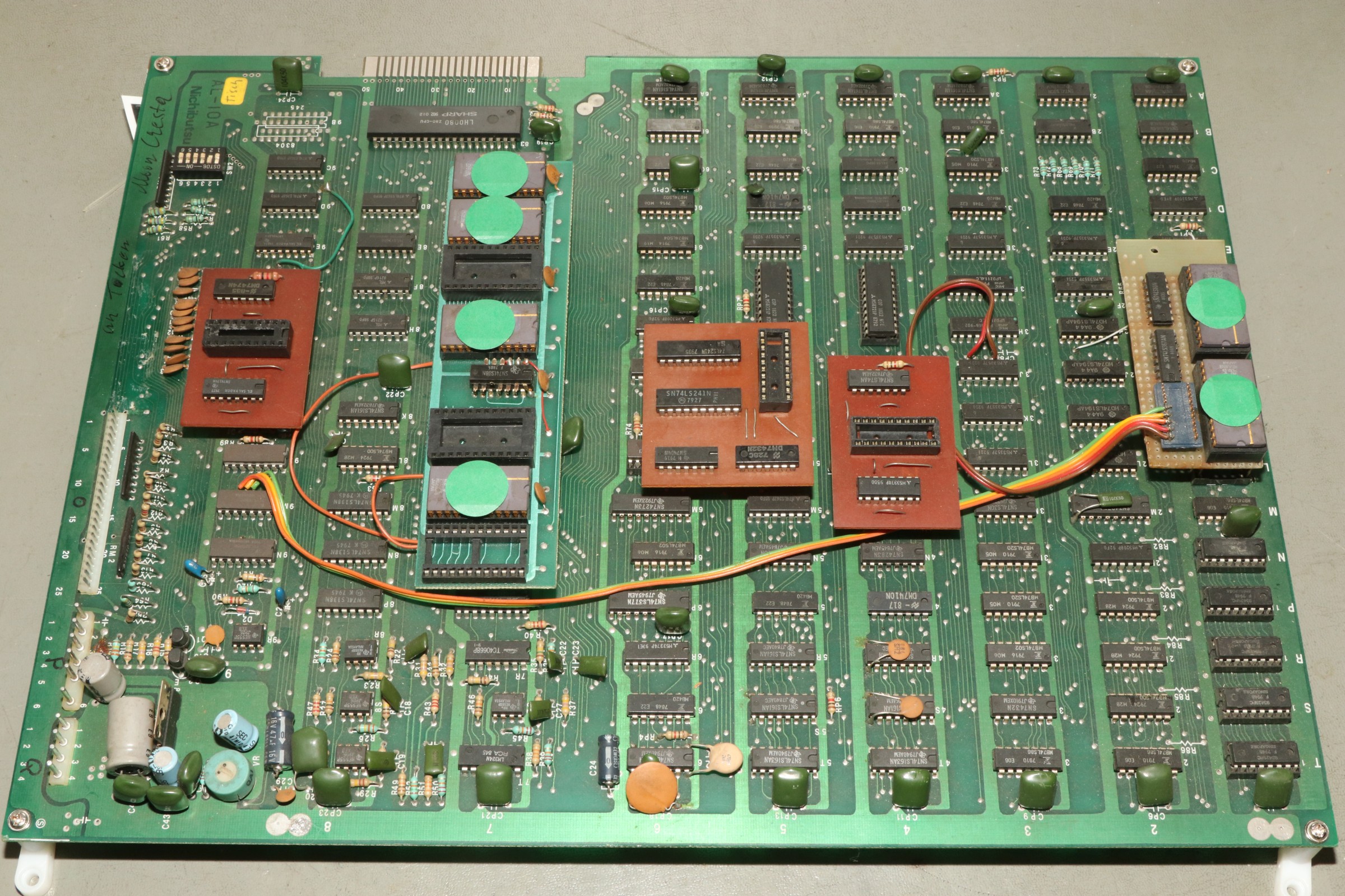 {Moon Cresta Pin Header PCB} Eine weitere Moon Cresta erreichte meinen Labortisch. Diesmal eine Version mit Pin Header Anschlussleiste, blöd zu kontaktieren... Hier wurde schon viel herumgebastelt: in erster Linie wurden Chip Selects für die ROMs umgebogen. Sieht nicht professionell aus, scheint aber auch kein Pfusch zu sein... Die PCB ist kein Bootleg, sondern original Nichibutsu! Die Daughterboards sehen trotzdem seltsam aus - hier noch in professionellem Pertinax: Diese hier ebenfalls, teilweise sind die Platinen eingelötet, teilweise gesteckt. Das wird eine Reparatur nicht leichter machen. Die Grafik-ROMs hingegen sind auf eine Experimentierplatine gelötet... Alles sehr seltsam. Die Anschlussbelegung ist im Service Manual beschrieben. Für einen schnellen Test löte ich die Kabel frech auf die Unterseite! Tja, da geht nicht viel. Der Videospeicher wird nicht angetastet... Und das Programm befindet sich von Anfang an in einer sinnlosen Dauerschleife. Nachdem ein CPU-Tausch nichts gebracht hat, sehe ich mir die ROMs an. Keines der 2532 liefert eine sinnvolle Prüfsumme. Bei den üblichen Moon Crestas sind die Daten in 2716 - hier eben kombiniert. Aber auch die kombinierten ROMs liefern unplausible Werte. Ich brenne alles neu... Na super... Es tut sich immer noch nichts, dafür schlägt jetzt der Watchdog zyklisch zu... Der Datenbus sieht aktiv aus, befindet sich aber trotzdem in Dauerschleife. Ich bin gespannt, ob ich da noch was ausrichten kann... |
