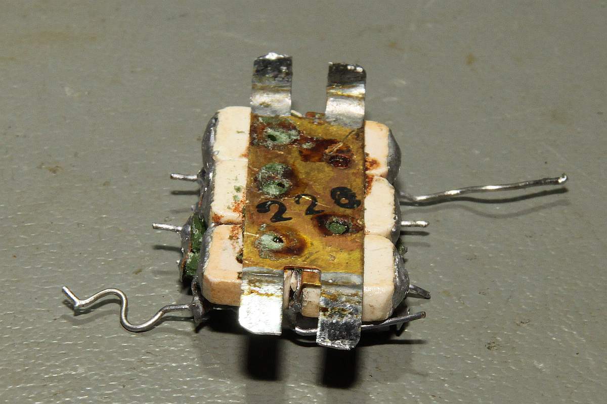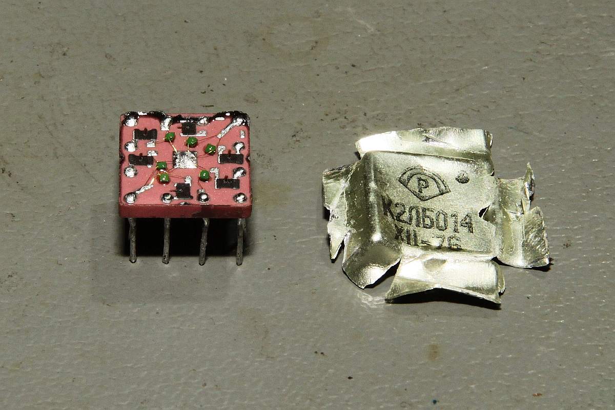 {Iskra 111 Obduktion} Mich hat schon immer interessiert, was so in den Blechkästen der Elektronikgeräte drin ist... als kleiner Junge habe ich bereits Röhren zerdeppert und die Systeme bis zum Glühfaden auseinandergenommen - erst viel später galang es mir dann, auch mal was Kaputtes zu reparieren... In der Bucht ist mir eine Iskra 111 Schrottpackung für einen Euro zugelaufen. Das war die Gelegenheit. Der Netzteil-Leistungstransistor hat sich - so scheint es - leicht überarbeitet... Der Trafo blutet, der Transistor ist gut gebräunt - egal, das sit eh alles Schlachteplatte! Ich greife mir eine der Logikplatinen - überall die gleichen ICs drauf: K2LB014 Sauber layoutet... Sieht irgendwie fremd und alt aus. Du bist dran! Ich mach Dich nackisch... Mir ist übrigens noch keine Vergussmasse untergekommen, die bei 250°C mit dem geregelten Heißluftfön nicht entweder weich oder krümelig wird. Diese hier wird krümelig! Das nenne ich mal Technik! Einzelne gebondete Transistor-Chips lackiert und Handgelötet... Und die Widerstände sind erstaunlicher Weise Laserabgeglichen... ich wusste nicht, dass man das damals schon gemacht hat! Auf der Unterseite sind die 6 Stück Pull-Ups: {Verzögerungsleitung} Die Tastatur hängt an zwei Verzögerungsleitungen - so zumindest die Aussage des ominösen Internets... Ich glaube nicht alles was ich lese, daher will ich mal selber nachsehen. Natürlich solide in Epoxy eingegossen und abgeschliffen... Von oben: ...und von unten: Auch hier gilt: bei 250°C gibt jede Masse auf... diese hier riecht dabei sogar nach Tannennadeln... wenn das mal so gesund ist... Und tatsächlich: die Verzögerungsleitung besteht aus sechs keramischen Kondensatoren (vermutlich 82pF) und 5 Spulen - sauber und funktionell auf ein Masseblech gelötet. Ich hab's ja nur mal wissen wollen! {Datenblätter K2LB014} In den Weiten des Internets findet man sogar Datenblätter zu den russischen ICs... Diese bestätigen das Ergebnis der Obduktion! Solide RTL-Logik. |
