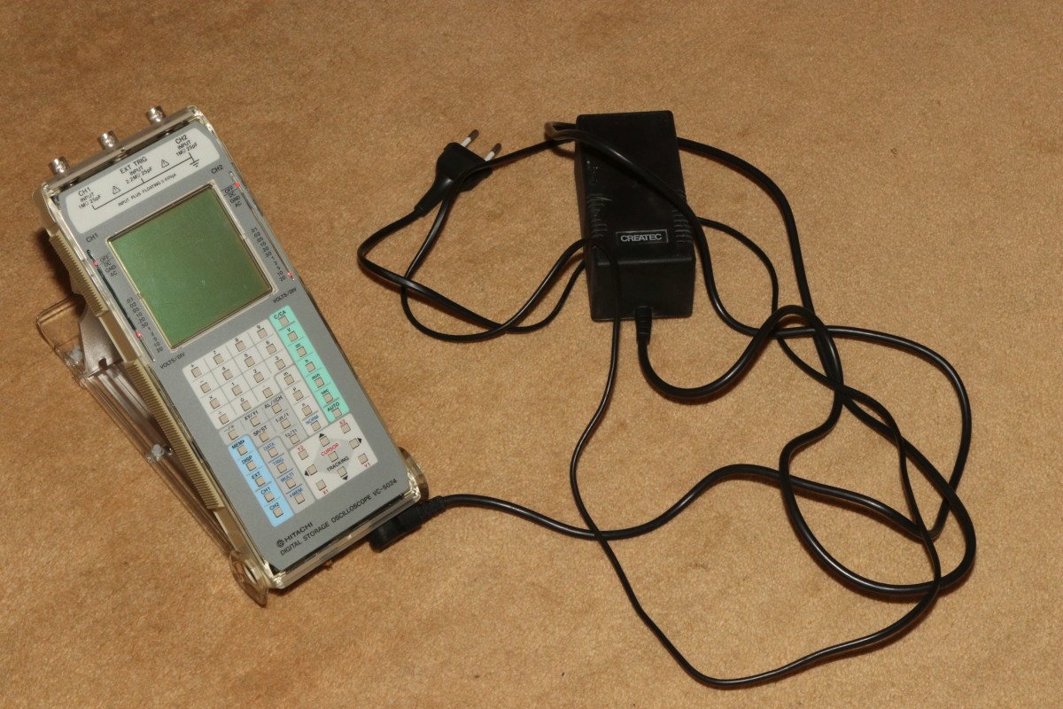 {Createc oder Gossen oder Hitachi - SC01} Zugelaufen als Hitachi VC-5024, verwunderte es mich arg, von Hitachi keinerlei Infos zu diesem Gerät zu finden. Die Recherche führte mich erst durch das Netzteil auf die richtige Spur: Basis des Gerätes ist ein SC01 von Createc - ein Verbrechen an der Bedienbarkeit, aber technisch seiner Zeit voraus! Ein tragbares Oszi mit untragbarer Bedienung. Von Florian J. erreichte mich vor geraumer Zeit (ja, manche Updates brauchen etwas länger...) eine sehr interessante Geschichte mit vielen unbekannten Details zu diesem Gerät, die ich euch nicht vorenthalten möchte! Das Gerät sieht schon irgendwie beeindruckend innovativ und ungewöhnlich aus! Der Spannungsbereich ist jetzt nicht berauschend, aber das macht ja dann ggf. der Vorteiler im Tastkopf wett. Beliebig gelabelt. Hier: Hitachi. Der ominöse Programmierstecker? Die Firmware ist auch an den Kunden angepasst. Und jetzt geht ohne Anleitung nichts mehr - wie gesagt: ein Verbrechen an der Bedienbarkeit. Da ist nichts mit intuitiver Menüführung. Man darf allerdings nicht vergessen, dass damals die Möglichkeiten und Erfahrungen auch andere waren und man heute ganz andere Bedienkonzepte gewohnt ist. {Createc SC01 Dokumentation} Hier sind noch die Scans der Bedienungsanleitung zum SC01 - zu Dokumentationszwecken.