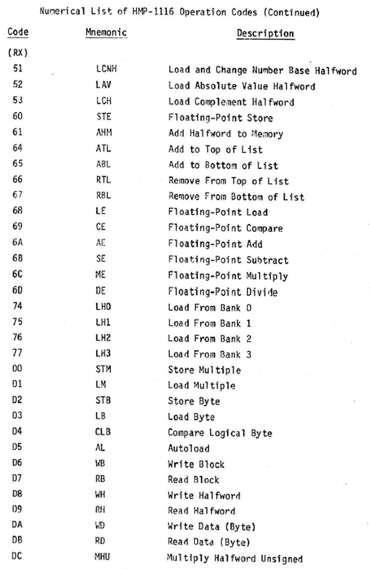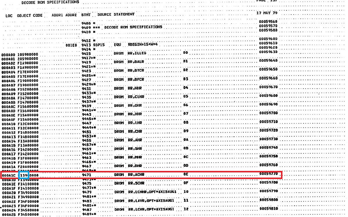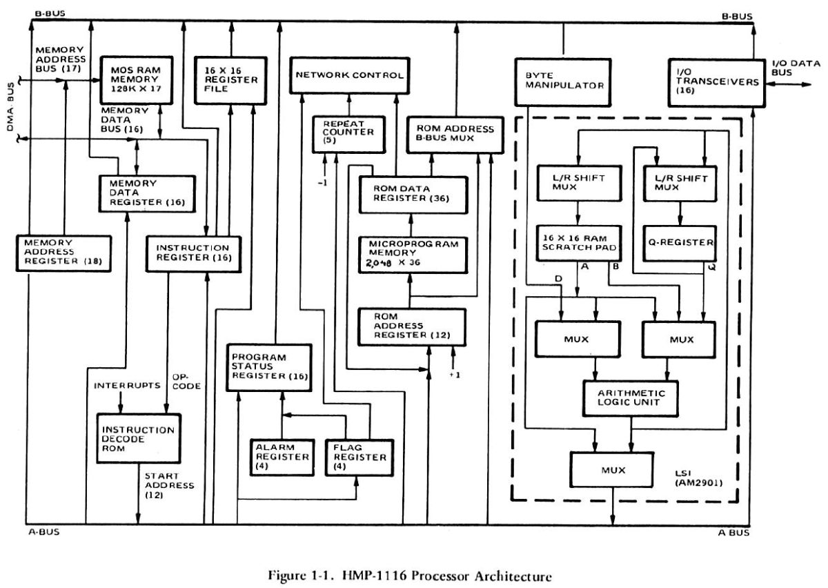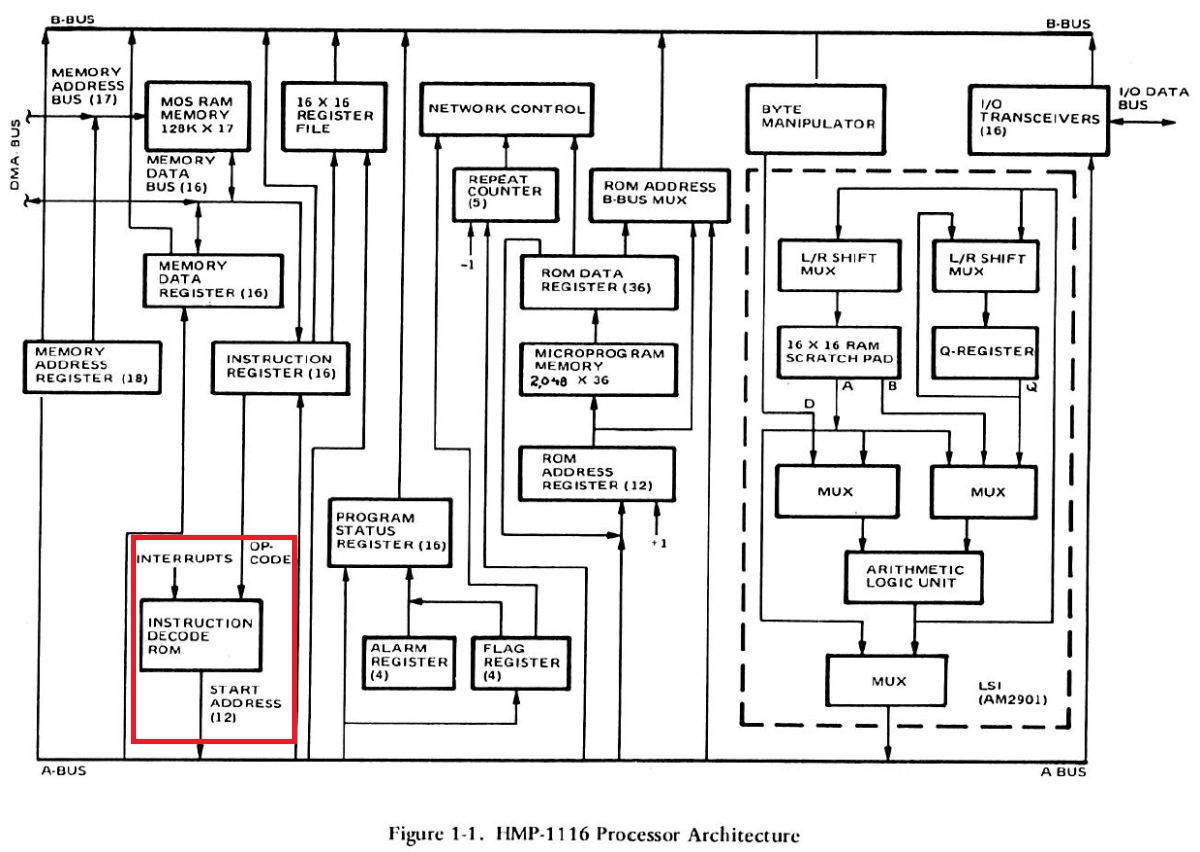 21.01.2026 {HUGHES HMP-1116 Bit Slice Microcomputer - die Dokumentation} Andrew Carol hat dereinst in den U.S.A. selber an diesem Rechner gelernt und mir dankenswerter Weise die technichen und die Schulungsunterlagen eingescannt. Vielen herzlichen Dank dafür! Ich denke, nach so langer Zeit handelt es sich hier nicht mehr um militärisch schützenswerte Geheimnisse, zumal ja die eigentlichen Anwendungsprogramme weder beschrieben noch auf dem Rechner gespeichert sind. Die Titelseiten sehen trotzdem respekteinflößend aus! Der Rechner ist auf den ersten Blick simpel aufgebaut. Cordic ist übrigens ein einfacher Algorithmus, um diverse mathematische Funktionen zu iterieren - unter anderem Trigonometrie. Dafür gibt es hier eine eigene Karte, die in bipolaren Proms die Konstanten enthält. Die groben Daten des Rechners aus Sicht des Benutzers: Der Prozessor hingegen ist deutlich komplexer aufgebaut - die Bit-Slice-Bausteine AM2901 kümmern sich eigentlich nur um Logik und Register. Die eigentliche Prozessorfunktion wird in Microcode abgebildet. Der Prozessor hat 5 Kategorien Microcodebefehle: In Summe sind nur 16 Befehle vorhanden, deren Funktion aber stark von den entsprechenden Parametern der übrigen Bits abhängt. Alle Funktionen sind über Hardware (Look-Up-PROMs, Decoder-PROMs, Multiplexer) gesteuert. Fünf Bit der Micro Instruction (AIC) steuern zum Beispiel die logische Operation, die von den ALUs ausgeführt werden soll. Der User hat allerdings eine große Zahl (max. 256) von teils sehr komplexen Funktionen als Befehlssatz zur Verfügung. Hier ist alles drin, von der Registerschieberei bis zur Division. Wie funktioniert das? In einem Satz bipolarer PROMs (Decode ROM) befindet sich eine hart verdrahtete Sprungtabelle, die den User-Opcode in eine Anfangsadresse für ein Micro Instruction Programm übersetzt. Opcode 0x0E (ACHR - Add WITH CARRY HALFWORD) verweist zum Beispiel auf Einsprungadresse 0x139 im Microcode-ROM. Das eigentliche Micro Instruction Programm ist hier recht kurz, eine Division geht dann schon mal über ein paar Seiten Listing... Wenn der Microcode ausgeführt wurde, ist praktisch der eine User-Assemblercode abgearbeitet worden. Hier versteckt sich das Instruction Decode ROM. Will man Befehle ändern, erweitern oder ergänzen, so muss man nur die bipolaren PROMs neu programmieren und erhält einen neuen Prozessor. Eine faszinierende Technologie, die sich so ähnlich auch in modernen Prozessoren wiederfindet! Und nein, ich werde jetzt nicht den Rechner in Betrieb nehmen und ein "Hello World!" für H1116 in Assembler programmieren! Hier befinden sich die Schulungsunterlagen zum Hughes HMP-1116 - seltene Stücke der Computer Archaeologie!