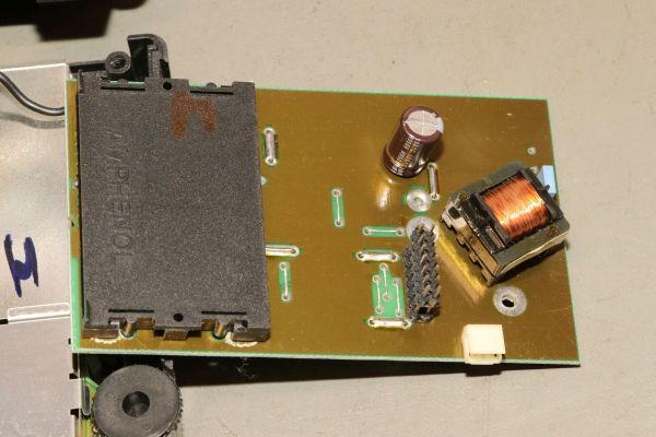 Auf der linken Seite befindet sich die typische Telefontechnik. Die Aufsteckplatine rechts enthält den Smart Card Halter und den Inverter für die LCD-Beleuchtung.