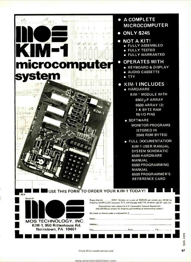 {MMD-1 8080A SBC} Der MMD-1 von E&L Instruments war 1976 nicht der erste SBC, aber bestimmt eines der ersten Systeme für den Intel 8080A Prozessor! Mit grandiosen 512 Byte RAM und 512 Byte ROM war da schon einiges möglich - viel aber auch nicht. E&L Instruments hatte das Design fast vollständig von der Elektronikzeitschrift "Radio Electronics" übernommen. In der Ausgabe 05/1976 wird das System genau beschrieben. Herzlichen Dank an www.americanradiohistory.com, auf deren Webseiten die Ausgaben einsehbar sind. Und dass der MMD-1 nicht der erste SBC war, wie es manchmal im Netz behauptet wird, zeigt die Anzeige für den KIM-1, die im gleichen Heft bereits für den bekannten 6502-SBC wirbt:. Das Exponat kam bei mir unvollständig und nachvollziehbar nicht funktionierend an. Auch der Einsatz einer standesgemäßen Intel 8080A CPU führte nicht zum Erfolg. Ob das an korrodierten Pins oder defekten TTLs lag, lässt sich nicht mehr feststellen... An der Ami-Sicherung lag es nicht, die hatte ich gleich zu Beginn ausgetauscht. Natürlich nicht gegen die untere Sicherung auf dem Foto, die dient nur dem Größenvergleich. Vielleicht lag es auch an den Umbauten auf dem Board, dessen Fädeldrähte man hier erkennen kann. Mit einem Kippschalter konnte man den LED-Port irgendwie auch auf einen Steckverbinder schalten... Dieser Kippschalter ragte recht weit nach unten raus... ... und traf sich bei nicht ordnungsgemäß verschraubter Platine mit dem direkt darunter liegenden unisolierten Netzschalter. Peng! Feuerwerk! Licht aus! Ein TTL Flipflop als Funkenstrecke... Eigentlich ist die Platine ja galvanisch getrennt, aber die 230VAC haben sich offensichtlich irgendeinen Weg in Richtung PE gesucht und gefunden. Ich will jetzt mal wissen, was so ein Supergau anrichtet. Erstmal alle Umbauten entfernen und den Originalzustand herstellen... Erstaunlich: auf der Leiterplatte gibt es keine verschmorten Leiterbahnen. Schalter weg, Stecker weg - die Platine hat 3,0 Ohm zwischen +5V und Masse - das heißt: so lange ICs ziehen, bis der Widerstand im erträglichen kOhm-Bereich liegt! Das Netzteil funktioniert noch einwandfrei. Die Elkos kann man trotzdem mal präventiv tauschen. So sieht die Verkabelung doch schon etwas fachgerechter aus: Die Guten in's Töpfchen, die Schlechten vor die Kamera... 230VAC sind kein Spaß! Weil es so eindrucksvoll ist... Nach der Neubestückung mit alten Schätzen: dieser Adressbus gefällt mir nicht. Ganz rechts hat von Anfang an ein 7404 gefehlt. Aus Gründen! Genau der schließt nämlich den ungepufferten Adresbus A12 mit dem gepufferten A2 kurz... Ohne IC geht das, dieses IC bedient auch nur den Erweiterungsstecker. Zwischendurch habe ich mal das Netzteil mit neuen Elkos versehen... ... und dann noch den Erweiterungsstecker abgelötet. Der hatte eine haarfeine Verbindung an den Vias, die man mit bloßem Auge nicht gesehen hat! Und schon läuft alles wieder einwandfrei! Selbst CPU, Taktgenerator und das 1702A-EPROM haben den Spannungsanschlag überlebt. Na ja, für den 1702 ist das quasi erst knapp über Brennspannung... Bis auf eine LED geht auch die Lichtorgel - endlich mal oktal programmieren. Im nächsten Beitrag zeige ich dann, wie man mit diesem Board umgeht und sogar selbstmodifizierenden Code zum Laufen bringt! |