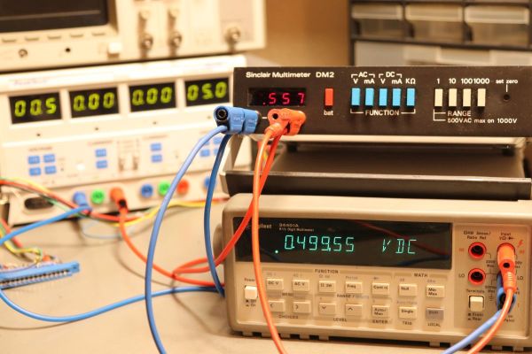 {Sinclair DM2} Als Sir Clives Firma noch "Sinclair Radionics" hieß, da brachte dieser geniale Tüftler auch andere Dinge auf den Massenmarkt als Homecomputer: Minifernseher, Armbanduhrenbausätze und dieses hübsche Multimeter DM2. Der Sinclair Schriftzug war hingegen schon eindeutig... Auf der Rückseite des erstaunlich stabilen Aluminiumgehäuses befindet sich nur der Anschluss für die Stromversorgung. Das Gerät kann mit Batterien oder mit Akkus versorgt werden - meines ist mit üppigen Nachrüstakkus ausgestattet. Für meine Erfahrungen mit Sinclair völlig untypisch: extrem stabile Metallkonstruktionen, satt rastende Knöpfe und absolut saubere Verarbeitung. Wahrscheinlich hat diese Qualität den Gewinn aufgefressen und so wurden die Nachfolgeprodukte deutlich optimiert - auf billig... Die Bodenwanne aus solidem Stahlblech. Darunter verbirgt sich eine Pertinaxplatine mit allerlei Elektronik. Das Herz des Multimeters ist der AY-5-3507 - ein All-In-One Dual Slope Wandler. Der wandelt eine analoge Spannung in digitale Werte, indem er einen Integrator mit der zu messenden Spannung über einen festen Zeitraum aufintegrieren lässt und diesen dann mit einer festen Referenzspannung bis zu 0V wieder herunterintegriert. Kombiniert man das trickreich mit einem Zähler, dann steht in diesem zum Schluss der zwei Rampen (deswegen "dual slope") der Spannungswert im "Klartext". Der AY-5-3507 bringt die komplette Steuerelektronik, die Zähler und die Siebensegment Treiber und Multiplexer mit, den Integrator liefert ein 3900. Die Widerstände des Eingangsspannungsteilers mit 0,1% Genauigkeit - das war gar nicht so billig... Auf der linken Seite befindet sich das modifizierte Akkupack... Die "Radio-Buttons" zur Bereichswahl sind auch von erstaunlich guter Qualität. Alles in Allem ein erstaunlich hochwertiges Gerät für Sinclair'sche Verhältnisse... Nur die Kalibrierung ist nicht mehr wirklich genau... Nicht schlecht, wenn man doch das eine oder andere Markengerät zum Vergleich zur Hand hat... In der "Everyday Electronics" wurde das Multimeter 1975 angepriesen... Umfangreich, tragbar, genau (na ja...) und echt stabil. Welcher Kaufkraft entsprachen 59 Pfund eigentlich 1975? |