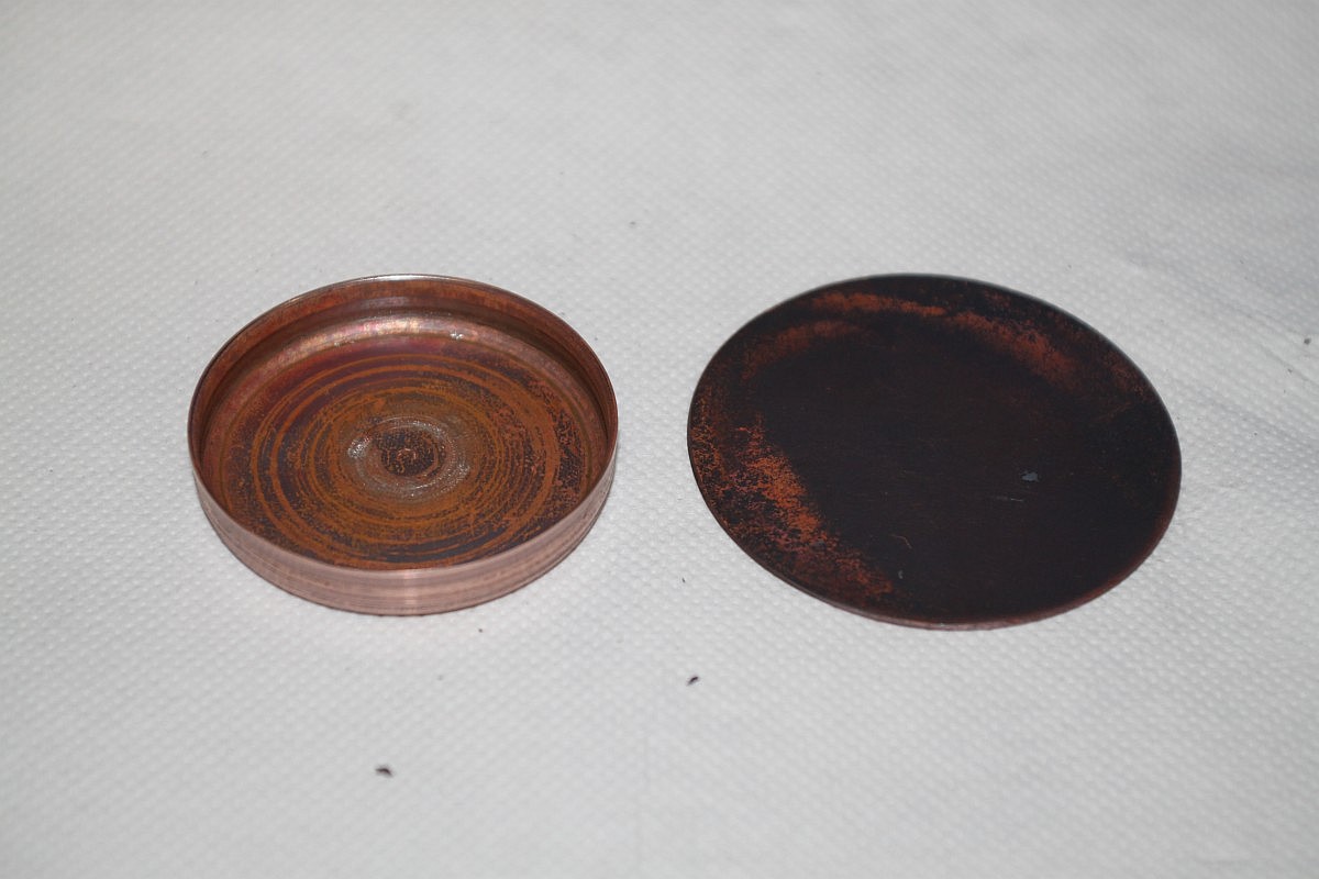 {Kupferdeckel selber bauen} Wer Dampfkessel aus Kupfer selber bauen möchte, braucht natürlich auch passende Deckel. Diese kann man sich für teures Geld im einschlägigen Fachhandel kaufen oder selber herstellen. Ich habe mir in der Elektrobucht Kupferrundlinge (0,7mm Dicke) mit passendem Durchmesser gekauft. Danach habe ich diese ausgeglüht und auf der Drehbank in die gewünschte Form gebracht. Das geht schneller und einfacher, als man zuerst denken mag.