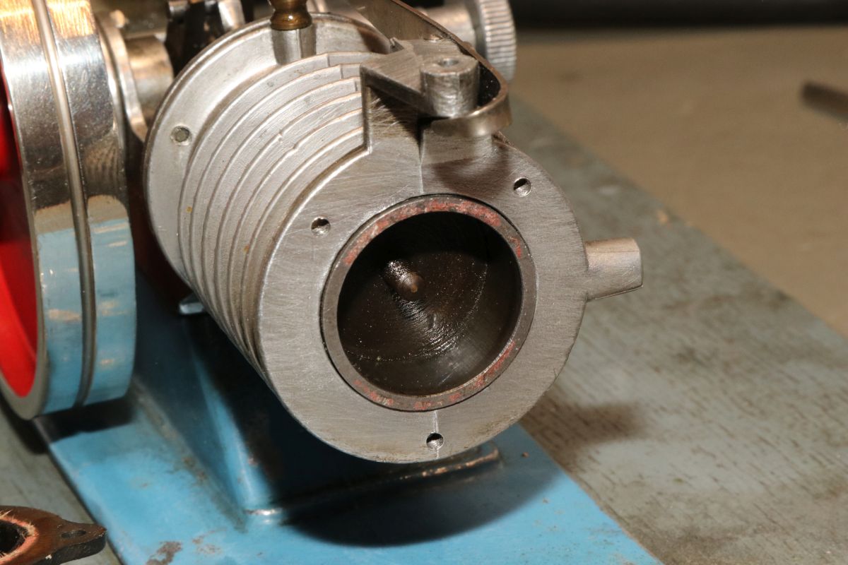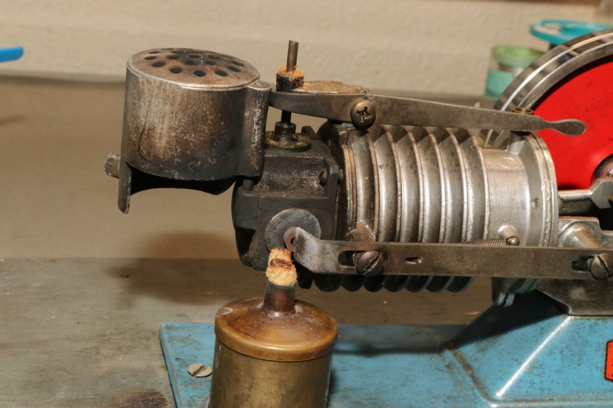 08.01.2026 {REBI Flammenfresser} Rolf M. hat mir ein tolles Weihnachtsgeschenk gemacht: einen REBI Flammenfresser aus dem Jahre 1952 mit beachtlichen 1/50 PS! Einziges Manko: der Kolben sitzt fest (Kolbenfresser statt Flammenfresser?). Aber hey, sonst hätte ich ja nichts zu tun! Flammenfresser nutzen ein interessantes System zur Krafterzeugung: während Benziner, Diesel und Dampfmaschinen Druck zum Antrieb nutzen, nutzt der Flammenfresser Unterdruck. Daher wird er auch Vakuummotor genannt. Die Energie steckt in der Brennerflamme. die heiße Luft wird in den Kolbenraum eingesaugt und kühlt dort ab, was zu einer Druckverringerung führt. Der äußere Atmosphärendruck presst nun den Kolben in den Zylinder hinein. Bei Verbrennungsmotoren ist das anders herum, der Verbrennungsdruck versucht, den Kolben aus dem Zylinder herauszupressen. Stirling-Motoren sind übrigens dem Flammenfresser ähnlich, nur haben wir dort ein geschlossenes System aus heißem und kaltem Gas. Der Flammenfresser ist ein offenes System. Der REBI Motor ist ein Produkt aus dem Hause Metallwaren Fabrik Honsel K.-G. Hangelar / Siegkreis. Es gibt zwar heute noch mehrere Honsel Metallverarbeiter, aber ob die was mit diesem Motor zu tun hatten, entzieht sich meiner Kenntnis! Gut gebraucht... ich freue mich schon auf die Restauration! Hier sieht man das Schieberventil für den Einlass und das Flatterventil für den Auslass. Da ist er, der Kolbenfresser. Das sieht jetzt nicht so schlimm aus. Das Einlassventil wird über eine Exzenterscheibe auf der Kurbelwelle gesteuert. Simpel und zuverlässig. Etwas sanfte Gewalt und ein wenig Ballistol später: der Kolben liegt frei. Die Nut in der Mitte ist keine Dichtung, sie scheint als Ölreservoir zu dienen... Der Brenner braucht etwas Liebe: ich ersetze den Lappen durch einen echten Docht! Zylinderwand und Kolben sind gereinigt und geschmiert... Die Dichtung hingegen sucht auch nach Ersatz! Eine Silikonmatte erscheint zuerst als eine gute Idee. Wenn sie denn nur nicht viel zu dick wäre... Da sich die Schiebereinstellung nicht verändern lässt, ist hier jeder Millimeter entscheidend! Mit der Silikondichtung läuft der Motor nicht an, erst eine dünne Papierdichtung liefert die gewünschte Funktion, dann stimmen die Steuerzeiten. Trotzdem ein schöner Anblick: der Zylinderkopf aus Guss ist gereinigt, der Brenner poliert... Ein wunderschönes Exponat, fast 75 Jahre alt! Wer so einen Motor hat, der weiß, dass das Anwerfen erst einmal mehrere Minuten dauert. Der Zylinder muss erst mal auf Temperatur kommen, damit das System läuft. Dafür gibt es keinerlei Zündsystem und keine Sauerei mit Wasser und Dampf! Hier sind noch zwei YouTube-Videos von meinem REBI-Motor in Aktion: