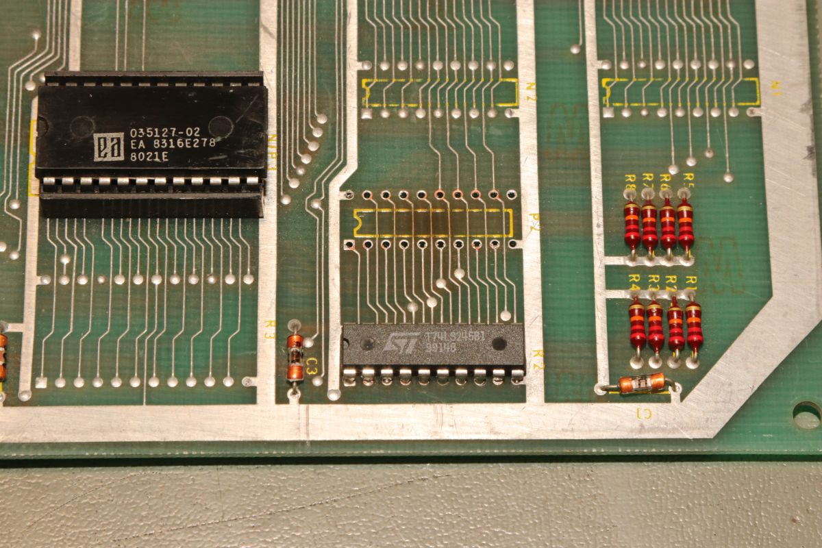 24.09.2025 {Asteroids im Doppelpack} Asteroids ist ein tolles Arcadespiel! Vektorgrafik, kaum Custom-Chips und sehr übersichtlich aufgebaut. Denkt man. Und wenn man dann zwei Platinen zur Reparatur bekommt, könnte man sich in der trügerischen Sicherheit wähnen, irgendwas zum Vergleichen zu haben. Die Wahrheit ist: ich kenne kaum ein Spiel, was sich so übel reparieren lässt, wie Asteroids. Missile Command vielleicht, oder Centipede. Ich erkenne ein Muster: Atari und alt - eine schlechte Mischung. Platine 1: Die RAMs hat schon mal wer getauscht... Die auch. Dann liegt es vermutlich nicht an den RAMs, wenn hier gar nichts geht. Platine 2: Hier gibt es keine Sockel, aber dafür ein Kreuz auf dem RAM. Die Bustreiber sind neu. Die hier auch, hat aber wohl nicht geholfen... Auch hier ist schon einiges gemacht worden - wer weiß, ob es danach besser oder schlechter geworden ist. Manchmal sind auch Reparaturen daran schuld, wenn nichts mehr geht. Diese CPU taktet immerhin, aber recht eintönig. Dazwischen legt sie sich mal schlafen, bis der WDT klingelt... Der 157er war auffällig aber leider nicht die Ursache. Ich habe endlich meinen Hilfstrafo gefunden. Die 2x18V benötigt man für die Vektorendstufen. Rustikal aber praktisch! Wir haben ein Bild - leider ohne sinnvollen Inhalt. Pieptöne gibt es auch nicht, eine Diagnose ist schwer zu geben. Manchmal ändert sich das Bild auch - ich werde mal alle verbliebenen 2114 tauschen, es scheint, als ob der Programmablauf gestört ist. Wenn beide Platinen nicht laufen, ist ein Vergleich schwierig. Ich bin gespannt! {Und es geht weiter!} Die Asteroids mit Funktion: immerhin funktioniert der NMI. Aber der ist auch Hardware-generiert. Ein geduldiger 4ms-Takt zum Bildaufbau. Die Asteroids ohne Funktion: Upps. Mein Fehler. Aber mit einem neuen 2114 läuft es genausowenig... Dafür meldet sich Kandidat 1 akustisch. Nachdem ich das Board mal komplett mit Lautsprecher verkabelt habe (immer eine gute Idee, die Asteroids sind akustisch mitteilungsfreudig, wenn sie mal anlaufen...) bekomme ich im Testmodus 4 höhere und einen tiefen Piepston. Das ist RAM N4. Das war übrigens auch der Baustein mit einem Kreuz drauf... Das RAM ist schnell getauscht. Die Asteroids sind mit dem richtigen Werkzeug sehr gut auszulöten. Das Programm startet ohne Fehler-Piep. Die RAMs scheinen in Ordnung zu sein. Wir haben ein statisches stabiles Bild. Im Testmodus kann man das Umlegen der DIP-Schalter jetzt optisch verfolgen. Außerhalb des Testmodus geht es immer noch nicht gut. Der Watchdog schlägt zu und das ist das Unangenehme bei Asteroids. Jeder Fehler im Vektor-Generator führt zum Programmabbruch und damit zum Watchdog. Gut, dass man den einfach stillegen kann. Jetzt bleibt erst mal Fehlersuche nach schlechten Pegeln. Nach einer Viertelstunde habe ich etwas gefunden. DVY5 sieht gar nicht gut aus! Ein 74191 ist mit 10 Ohm eingangsseitig viel zu niederohmig. Viele Kiloohm wären hier zu erwarten gewesen. Der Baustein ist getauscht, der Widerstand von DVY5 gegen Masse steigt auf 40 Ohm - "Not great, not terrible!". Da ist noch mehr defekt. An der Leitung hängt einiges drann, ich werde alle Teilnehmer ansehen müssen. Immerhin haben wir jetzt schon ein Bild, was fast nach Gameplay aussieht! Der Pegel hat es ja auch schon fast geschafft... Mich würde mal interessieren, woher dieser Schaden kommt, der diverse IC-Eingänge hat durchlegieren lassen... Kurzschluss? Überspannung? Jetzt muss ich erst mal 7497 bestellen, den habe ich nicht im Lager - braucht man so gut wie nie! Außer bei Asteroids... {Und es geht noch weiter!} Die Spezialbauteile sind da! 7497 ersetzt - die Pegel sehen gut aus! Plötzlich sieht auch das Vektorbild interessanter aus, auch wenn noch nichts richtig läuft... Zumindest wird hier mal was berechnet und dargestellt: Das Vector-Generator-ROM hat anormale Pegel auf den Datenleitungen. Da stimmt was nicht: Ich tausche den alten Bustreiber... Hier hat man daran gedacht, zwei verschiedene Typen einsetzen zu können. Ich wähle den modernen 74LS245. Hat leider nicht geholfen. Das ROM funktioniert. Die 2114 ersetze ich jetzt alle. Wow! Der Test-Screen läuft plötzlich einwandfrei. Aber hier werden auch keine Anforderungen an den Vector-Generator gestellt... Präventiv tausche ich (erfolglos) den letzten Uralt-Bustreiber. Auch gegen einen aktuellen Typen. Hilft nicht. Aus den 16-Bit Register-RAMs kommt teilweise nichts raus. Ich tausche zwei Bausteine. Während ich mich noch freue, stirbt einer der Bustreiber... Ich werde noch irre. War ja klar, Signetics SA. Aber nachdem der auch ersetzt ist, erwartet mich ein überraschendes Vector-Bild. Leider spinnt immer noch irgendwas im Vector-Generator-Teil - es gibt Artefakte und das Programm stürzt regelmäßig ab. Aber die Programmausführung läuft, der Vector-Generator zeichnet und der Testbildschirm meldet keine Fehler. Ich bin gespannt, ob ich die Ursache noch finde, bevor wieder irgendein Baustein stirbt... |