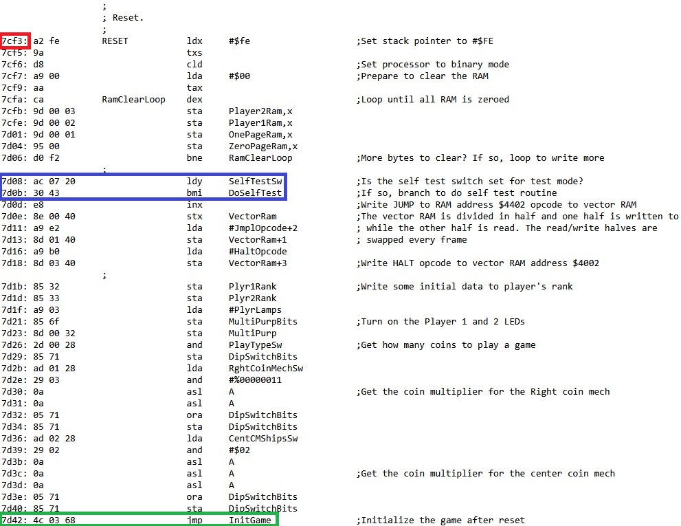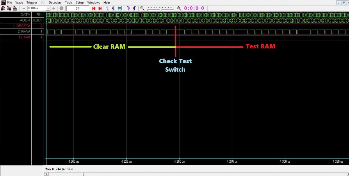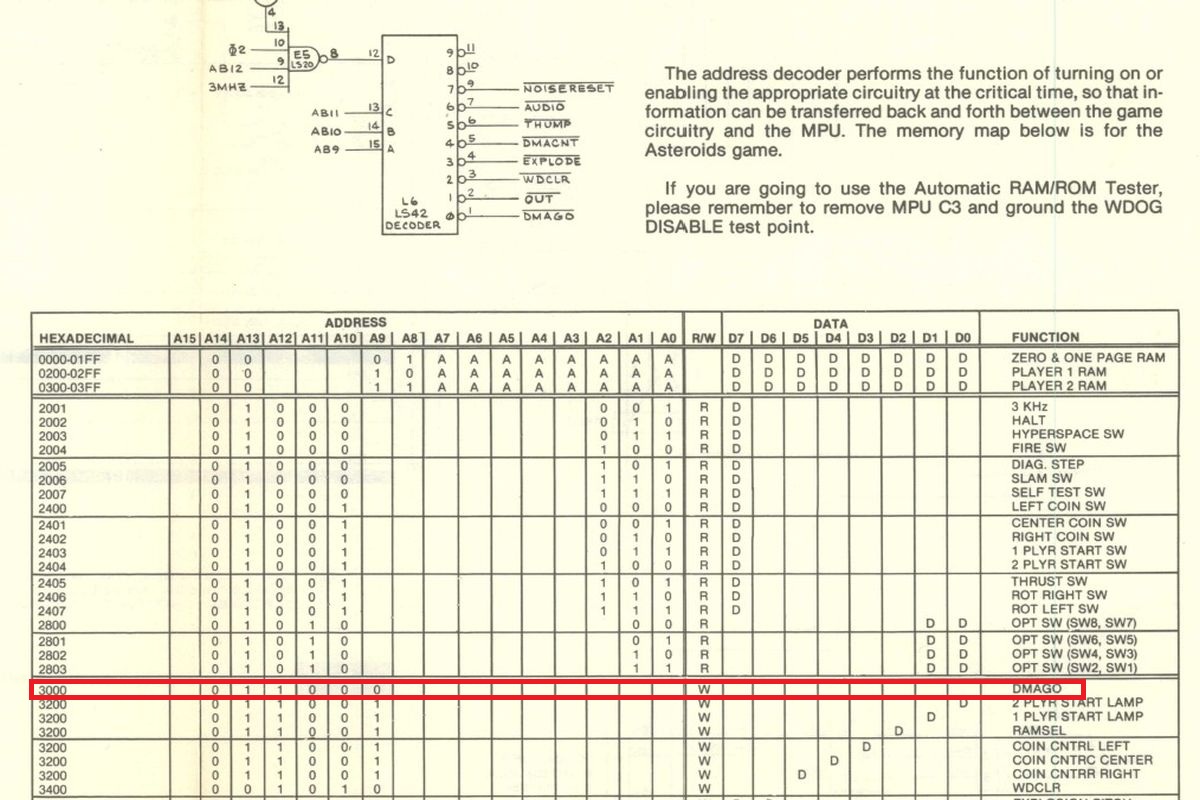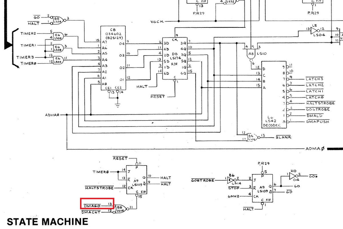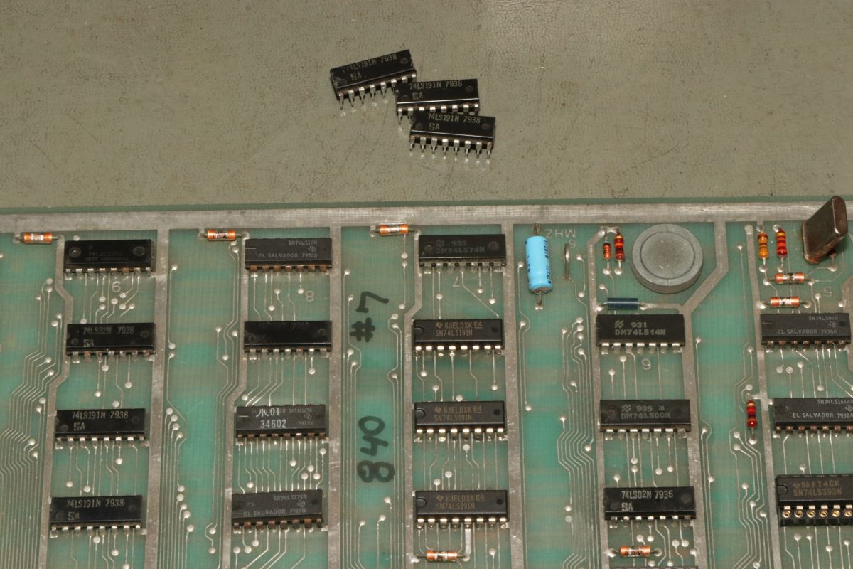 24.09.2025 {Asteroids im Doppelpack} Asteroids ist ein tolles Arcadespiel! Vektorgrafik, kaum Custom-Chips und sehr übersichtlich aufgebaut. Denkt man. Und wenn man dann zwei Platinen zur Reparatur bekommt, könnte man sich in der trügerischen Sicherheit wähnen, irgendwas zum Vergleichen zu haben. Die Wahrheit ist: ich kenne kaum ein Spiel, was sich so übel reparieren lässt, wie Asteroids. Missile Command vielleicht, oder Centipede. Ich erkenne ein Muster: Atari und alt - eine schlechte Mischung. Platine 1: Die RAMs hat schon mal wer getauscht... Die auch. Dann liegt es vermutlich nicht an den RAMs, wenn hier gar nichts geht. Platine 2: Hier gibt es keine Sockel, aber dafür ein Kreuz auf dem RAM. Die Bustreiber sind neu. Die hier auch, hat aber wohl nicht geholfen... Auch hier ist schon einiges gemacht worden - wer weiß, ob es danach besser oder schlechter geworden ist. Manchmal sind auch Reparaturen daran schuld, wenn nichts mehr geht. Diese CPU taktet immerhin, aber recht eintönig. Dazwischen legt sie sich mal schlafen, bis der WDT klingelt... Der 157er war auffällig aber leider nicht die Ursache. Ich habe endlich meinen Hilfstrafo gefunden. Die 2x18V benötigt man für die Vektorendstufen. Rustikal aber praktisch! Wir haben ein Bild - leider ohne sinnvollen Inhalt. Pieptöne gibt es auch nicht, eine Diagnose ist schwer zu geben. Manchmal ändert sich das Bild auch - ich werde mal alle verbliebenen 2114 tauschen, es scheint, als ob der Programmablauf gestört ist. Wenn beide Platinen nicht laufen, ist ein Vergleich schwierig. Ich bin gespannt! {Und es geht weiter!} Die Asteroids mit Funktion: immerhin funktioniert der NMI. Aber der ist auch Hardware-generiert. Ein geduldiger 4ms-Takt zum Bildaufbau. Die Asteroids ohne Funktion: Upps. Mein Fehler. Aber mit einem neuen 2114 läuft es genausowenig... Dafür meldet sich Kandidat 1 akustisch. Nachdem ich das Board mal komplett mit Lautsprecher verkabelt habe (immer eine gute Idee, die Asteroids sind akustisch mitteilungsfreudig, wenn sie mal anlaufen...) bekomme ich im Testmodus 4 höhere und einen tiefen Piepston. Das ist RAM N4. Das war übrigens auch der Baustein mit einem Kreuz drauf... Das RAM ist schnell getauscht. Die Asteroids sind mit dem richtigen Werkzeug sehr gut auszulöten. Das Programm startet ohne Fehler-Piep. Die RAMs scheinen in Ordnung zu sein. Wir haben ein statisches stabiles Bild. Im Testmodus kann man das Umlegen der DIP-Schalter jetzt optisch verfolgen. Außerhalb des Testmodus geht es immer noch nicht gut. Der Watchdog schlägt zu und das ist das Unangenehme bei Asteroids. Jeder Fehler im Vektor-Generator führt zum Programmabbruch und damit zum Watchdog. Gut, dass man den einfach stillegen kann. Jetzt bleibt erst mal Fehlersuche nach schlechten Pegeln. Nach einer Viertelstunde habe ich etwas gefunden. DVY5 sieht gar nicht gut aus! Ein 74191 ist mit 10 Ohm eingangsseitig viel zu niederohmig. Viele Kiloohm wären hier zu erwarten gewesen. Der Baustein ist getauscht, der Widerstand von DVY5 gegen Masse steigt auf 40 Ohm - "Not great, not terrible!". Da ist noch mehr defekt. An der Leitung hängt einiges drann, ich werde alle Teilnehmer ansehen müssen. Immerhin haben wir jetzt schon ein Bild, was fast nach Gameplay aussieht! Der Pegel hat es ja auch schon fast geschafft... Mich würde mal interessieren, woher dieser Schaden kommt, der diverse IC-Eingänge hat durchlegieren lassen... Kurzschluss? Überspannung? Jetzt muss ich erst mal 7497 bestellen, den habe ich nicht im Lager - braucht man so gut wie nie! Außer bei Asteroids... {Und es geht noch weiter!} Die Spezialbauteile sind da! 7497 ersetzt - die Pegel sehen gut aus! Plötzlich sieht auch das Vektorbild interessanter aus, auch wenn noch nichts richtig läuft... Zumindest wird hier mal was berechnet und dargestellt: Das Vector-Generator-ROM hat anormale Pegel auf den Datenleitungen. Da stimmt was nicht: Ich tausche den alten Bustreiber... Hier hat man daran gedacht, zwei verschiedene Typen einsetzen zu können. Ich wähle den modernen 74LS245. Hat leider nicht geholfen. Das ROM funktioniert. Die 2114 ersetze ich jetzt alle. Wow! Der Test-Screen läuft plötzlich einwandfrei. Aber hier werden auch keine Anforderungen an den Vector-Generator gestellt... Präventiv tausche ich (erfolglos) den letzten Uralt-Bustreiber. Auch gegen einen aktuellen Typen. Hilft nicht. Aus den 16-Bit Register-RAMs kommt teilweise nichts raus. Ich tausche zwei Bausteine. Während ich mich noch freue, stirbt einer der Bustreiber... Ich werde noch irre. War ja klar, Signetics SA. Aber nachdem der auch ersetzt ist, erwartet mich ein überraschendes Vector-Bild. Leider spinnt immer noch irgendwas im Vector-Generator-Teil - es gibt Artefakte und das Programm stürzt regelmäßig ab. Aber die Programmausführung läuft, der Vector-Generator zeichnet und der Testbildschirm meldet keine Fehler. Ich bin gespannt, ob ich die Ursache noch finde, bevor wieder irgendein Baustein stirbt... {Und ich krieg sie doch!} Warum funktioniert der Vektorgenerator nicht richtig? Stimmt vielleicht doch was mit den Registern nicht? Die ursprünglich verbauten 74LS170 sind Open Collector Typen, daher auch die Pull-Ups. 74LS670 sind 3-State Typen. Ich entferne vorsichtshalber mal die Pull-Ups. Sieht sauber aus, hat aber nichts genützt. Vielleicht hat das Vector-ROM einen Schuss? 2716 ist ein 1:1-Ersatz. Keine Änderung im Verhalten. Es sind keine Bausteine mehr übrig, die ein anormales Verhalten an den Ausgängen zeigen. Multiplexer haben allerdings manchmal die Eigenschaft, funktionsfähige Ausgänge, aber defekte interne Umschalter zu haben. Das sieht man mit dem Oszi nicht. Ein huckepack aufgesteckter Zweitbaustein zeigt dann allerdings Zwischenpegel, wenn die beiden Ausgänge mit widersprüchlichen Pegeln kämpfen. Das hat mich auf einen defekten 74LS157 gebracht. Hab dich, du Mistkerl! Platine 1 kann starten. Jetzt zu Platine 2: die CPU macht ein wenig und verwickelt sich dann in den Watchdog. Alle M