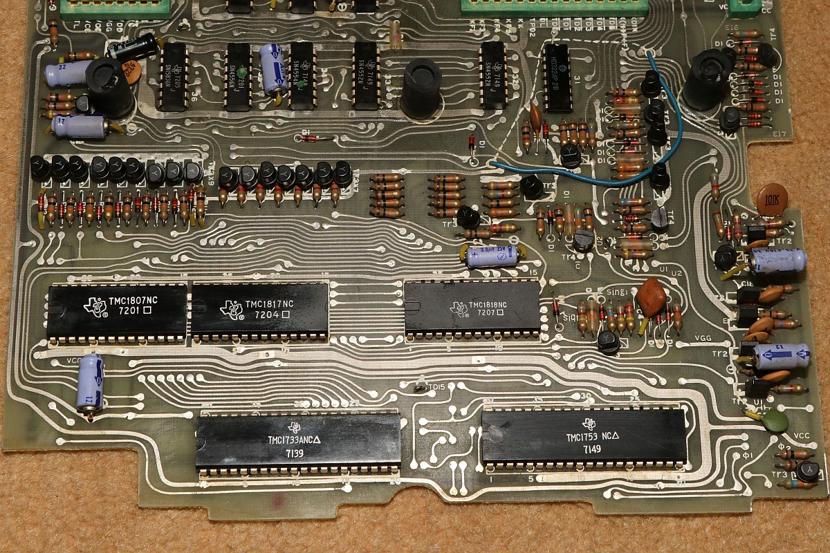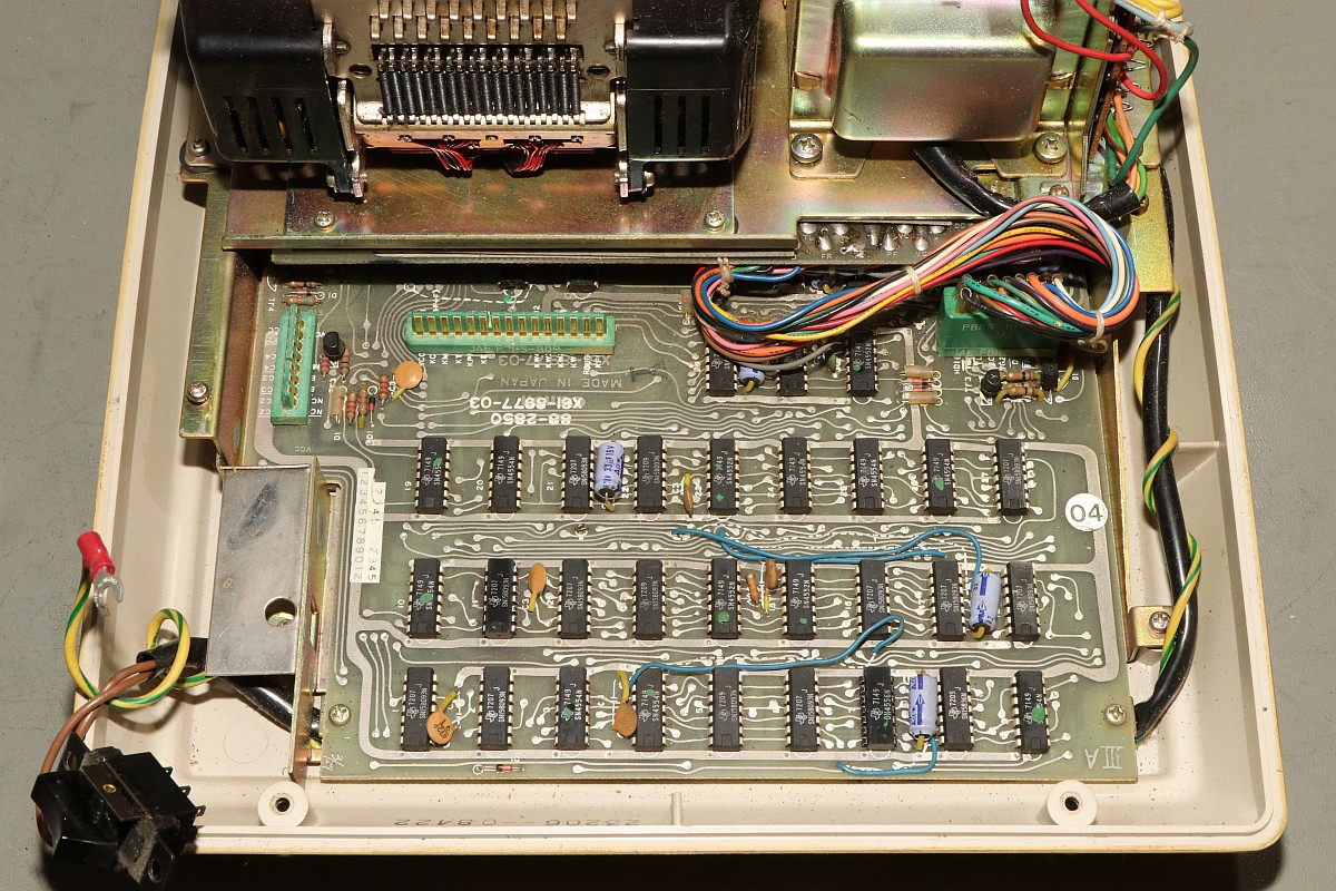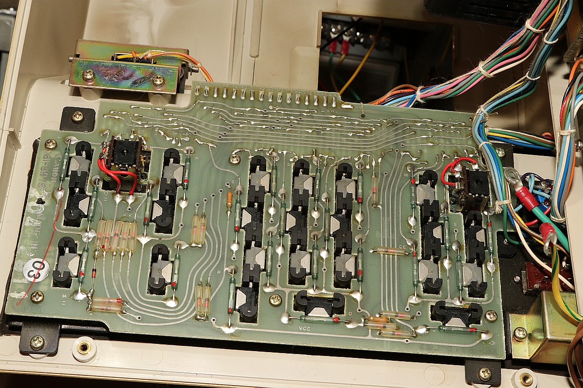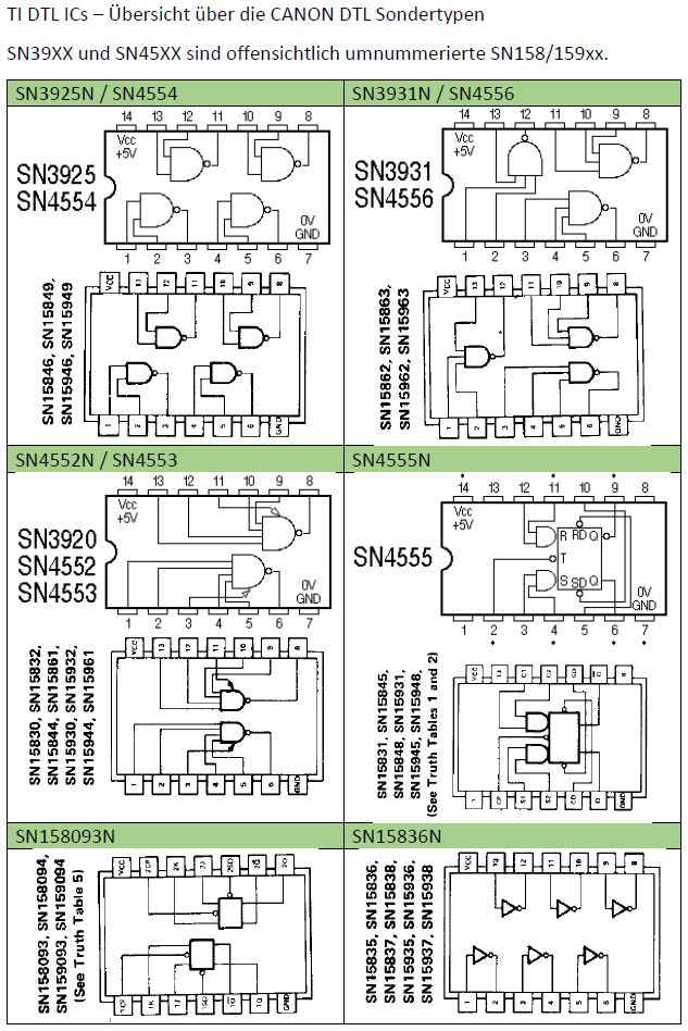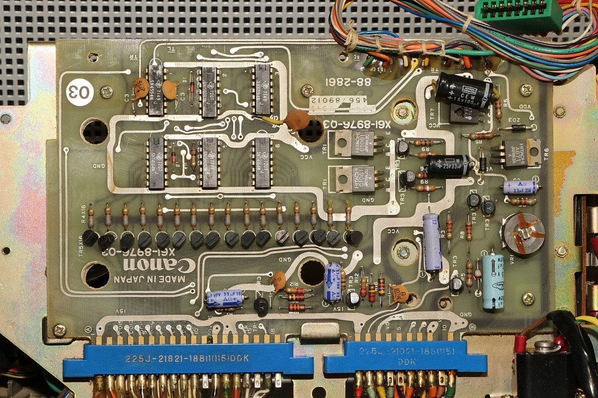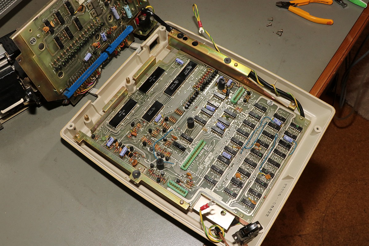 {Canon Canola MP131L - Rechnen ohne Display} Ein Neuzugang in meiner Rechnersammlung: eine Canola von 1972, Modell MP131L - ohne Display, dafür mit Drucker. Das Teil wirkt im Jahr 1972 etwas aus der Zeit gefallen, sind hier noch eine bunte Mischung aus Texas-DTL-Logikbausteinen mit einem niedrig integrierten Rechnerchipsatz (ebenfalls TI) verbaut, so gibt es bereits deutlich höher integrierte Tischrechner in kleinerer Bauform auf dem Markt. Das Gerät verzichtet auf eine Anzeige und bietet dafür einen Druckerklassiker (Shinshu Seiki Model-102) und eine LED-Zeile zur Anzeige der aktuellen Stelle bei der Eingabe. Es wirkt so, als habe man sich noch nicht ganz von den mechanischen Rechenmaschinen verabschieden wollen... Von einem Wackelkontakt im Tastaturstecker abgesehen, funktioniert die Rechenmaschine noch tadellos. Das Gehäuse ist großzügig - ich hätte eher mit voll-diskretem Aufbau gerechnet... (nettes Wortspiel...) Alles wirkt stabil und wertig - das soll sich bei Canon in den nächsten 20 Jahren grundlegend ändern... 18W und quasi EMV-gerecht... Der erste Blick unter die Tastatur lässt diskrete Logik erscheinen - das kann nicht alles sein... Der Drucker ist ein Klassiker: Shinshu Seiki Model-102 - oder später Epson EP-102 - dieses Modell wurde seinerzeit schon im Busicom 141 PF eingesetzt - dem Klassiker mit Intel 4004, den ich auch gerne in meiner Sammlung hätte... Es handelt sich um einen Trommeldrucker, dessen Drucktrommel mit erhabenen Lettern sich permanent dreht. Darauf liegen das Papier und das Farbband lose auf, kleine Hämmerchen schlagen auf das Farbband, wenn auf der Unterseite die richtige Zahl vorbeikommt. Das muss fix gehen, weil die Trommel dabei nicht anhält. Die Netzteilplatine ist überschaubar komplex - Spannungsregler sind anderweitig untergebracht. Ein dicker Glättungselko muss reichen... Die Seitenansicht des Druckers: Die Hauptplatine in 2400x1600 Pixeln Auflösung. Da ist noch mehr als DTL drauf. Ebenso von unten. Hier ist der oft eingesetzte Texas Instruments Rechenmaschinen Chipsatz - mittelmäßig integriert und je nach Maschinenanforderung unterschiedlich zusammengesetzt: Auf der Platinenunterseite ist die Funktion erklärt - gut, denn Datenblätter habe ich noch keine gefunden... Die Druckerelektronik arbeitet über einen DTL/TTL-Mix mit Schieberegistern - das spart Leitungen. Es ist schon ein aufwändiger Aufbau... ...mit extrem sicherem Erdungskonzept: Tastatur mit Reed-Schaltern für die Ewigkeit. Falsch! Der 8er Reed-Kontakt geht mittlerweile recht schlecht, da muss ich mal ersetzen. Die Steckverbinder sind sehr stabil und vergoldet - trotzdem kommt es hier nach 50 Jahren zu Wackelkontakten, vermutlich gehen die Gehäuse langsam auseinander und die Federkontakte drücken nicht mehr ausreichend auf die Gegenkontakte. Wenn die Tastatur nicht mehr richtig kontaktiert, merkt man das am Error-Lauflicht nach manchen Tastendrücken. Die Magnetschalter im Detail: Das Druckbild ist echt hübsch. Besonderes Schmankerl: das Tausender-Trennzeichen wird zwischen die Zahlen gedruckt und verschwendet keine zusätzliche Stelle! Die Power LED signalisiert Betriebsbereitschaft. Die weiteren LEDs zeigen, wieviele Stellen bereits eingegeben wurden. Hier: 6. Und die Memory LED zeigt an, ob im Speicher ein Wert steht. Das muss an Informationen reichen. Ein schöner und unverwüstlicher Rechner zwischen Mechanik und hochintegrierter Elektronik. Hier noch ein Überblick über die eingesetzten DTL Chips von TI - im Internet hat sich Brent Hilpert schon mal die Mühe gemacht, diese und viele andere technische Details der Rechenmaschinen zu reverse-engineeren: http://madrona.ca/e/eec/ics/TIDTL.html - Aber das Texas Instruments Datenbuch gibt nach einiger Suche bei den DTL-Serien auch die originalen Typennummern preis. {Canon Canola MP141 - The Next Generation} Andi M. hat mir freundlicher Weise Fotos seiner Canola MP141 geschickt - sieht so ähnlich aus wie die 131, ist aber intern schon deutlich weiter integriert! Der gesamte DTL/TTL-Kram ist schon zugunsten von Hitachi LSI-Chips verschwunden. Die Fortentwicklung der Technik in dieser Zeit war rasend schnell! Immerhin der Drucker ist noch der gleiche... |