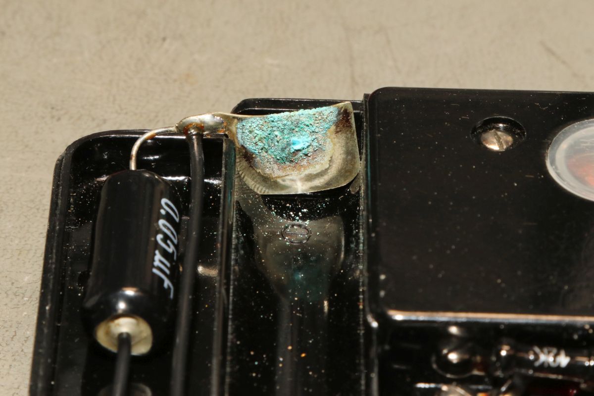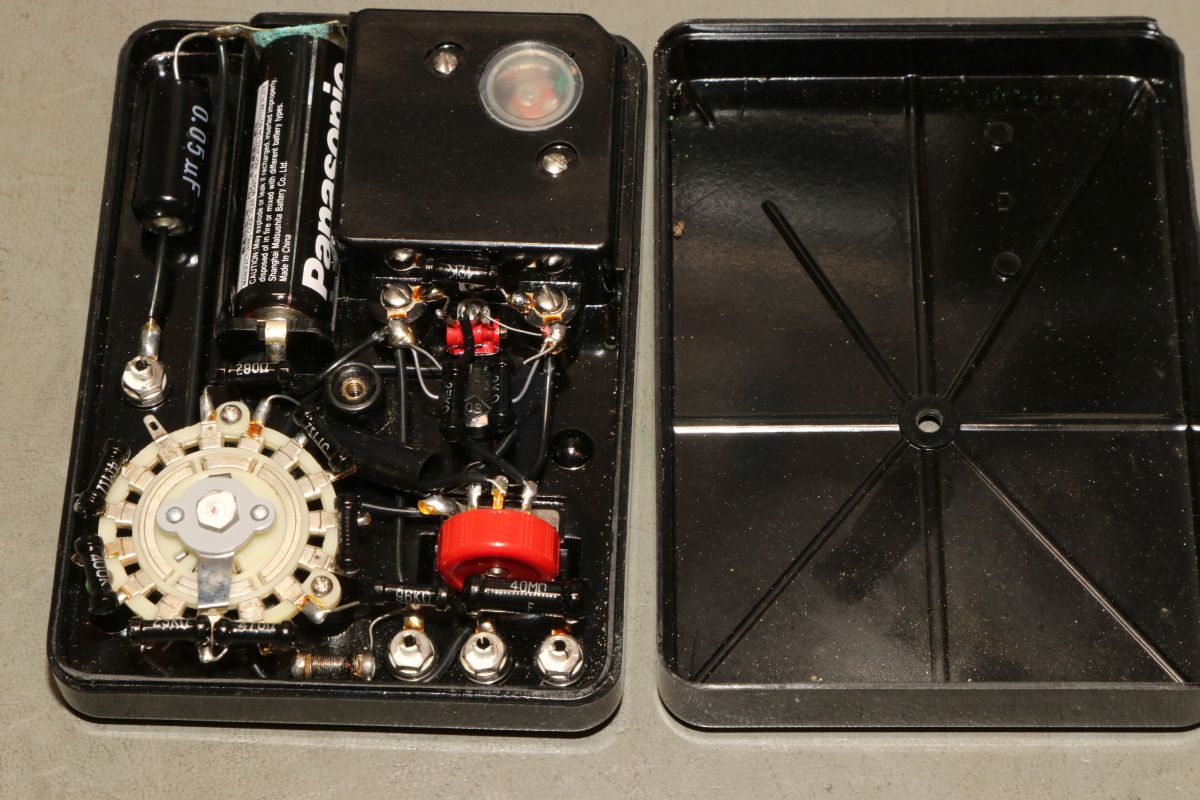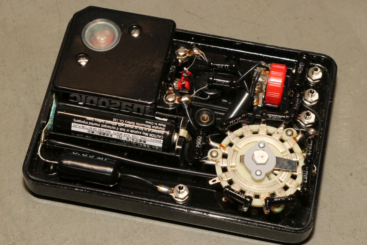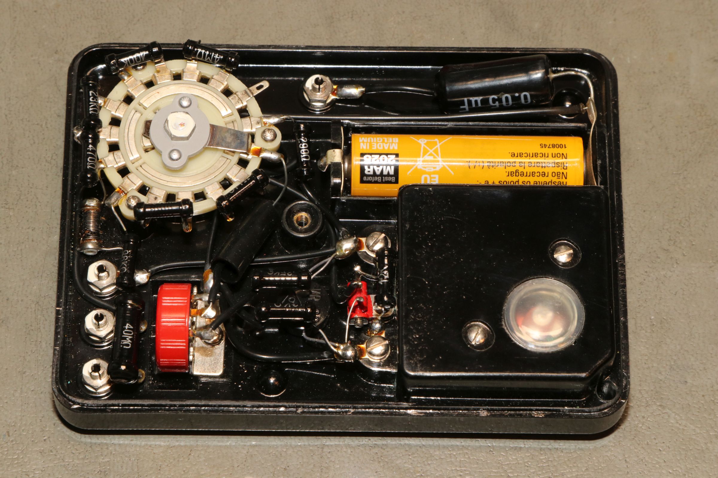 06.10.2025 {Kosmos Multimeter Ultron UM201E} Die Kosmos-X-Experimentierkästen verweisen des Öfteren auf ein passendes Multimeter, um den Erfolg der Aufbauten auch messtechnisch überprüfen zu können. Arme Leute haben dafür das mitgelieferte Galvanometer (Spule plus Kompassnadel) genutzt, Poser durften bei Kosmos das schöne Ultron UM201E kaufen. Dieses formschöne Instrument im Bakelitgehäuse wurde in gleicher oder leicht abgewandelter Form auch unter anderen Namen und Firmen vertrieben: TEVATEST MS-202T, MONACOR MT-202C, NORIS 620SPN, SEC M62D (Radio RIM), 200H - und vermutlich noch vielen mehr... Alle Geräte waren einfach aufgebaut und mit einem 38µA Drehspulmesswerk ausgestattet. Jetzt habe ich die Kästen, da muss der Vollständigkeit halber auch das Messwerkzeug her: High Quality. Was sonst? Die Box ist wertig. Das Messgerät darinnen ist in der Tat erstaunlich. Das schwere Bakelitgehäuse liegt satt in der Hand, das Drehspulmesswerk mit Spiegelskala ist gut ablesbar und sauber gedämpft. 1969... da war ich zwei Jahre alt und habe mich sicher noch nicht für so etwas interessiert... Die Bedienelemente sind überschaubar: ein Drehknopf für die Bereichswahl, ein Masseanschluss und ein Plusanschluss, sowie ein separater Hochvoltanschluss. Der obere rechte Anschluss ist für Kapazitätsmessungen gedacht. Dieses Produkt ist für die Firma SEC gelabelt... Wer das wohl hergestellt hat? Das Messgerät ist ziemlich intuitiv bedienbar. Eine Schraube hält die Rückwand. Die Batterie (die man hätte beizeiten entsorgen sollen...) ist für die Widerstandsmessung da. Sehr viel ist da jetzt nicht drin... Grünspan. Eine Drahtbürste und ein Glasfaserradierer machen alles wieder gut. Die Polung sollte beachtet werden, sonst schlägt das Messwerk in die falsche Richtung aus... Bereit für die Arbeit! Ein kleines, aber feines Detail: ein Kupferoxydul-Gleichrichter. der hat zwar miese Sperrstromwerte aber eine unschlagbar niedrige Vorwärtsspannung. Die Schraube presst die Kupferoxyd-Plättchen zusammen - ich dachte zuerst, das wäre ein Abgleichkondensator... Der Rückdeckel verrät nur seine Herkunft... Mit neuer Batterie ist die Widerstandsmessung schon mal exzellent! Die Spannungsmessung hingegen ist in allen Bereichen falsch, die Werte sind viel zu hoch. Das liegt an einem durchgebrannten 47Ohm Widerstand im Strommesskreis. Hier ist alles miteinander verbastelt, wen da was durchbrennt, stimmt auch die Spannungsmessung nicht mehr. Provisorisch ersetzt. Ist jetzt nicht so 100% genau und vor allem nicht überlastfest - aber es geht! Jetzt habe ich die Kosmos-Experimentierwelt ziemlich komplett... Da sollte man mal einen Film drüber machen. ;-) {SEC M62D / Modell 200H Dokumentation} Hier ist der Scan der Bedienungsanleitung zum Multimeter.