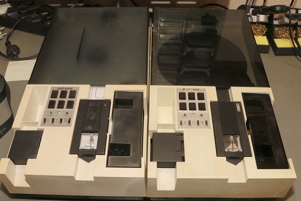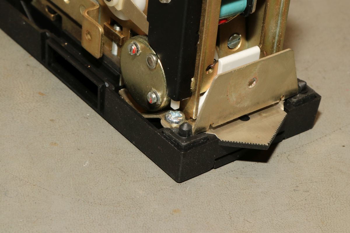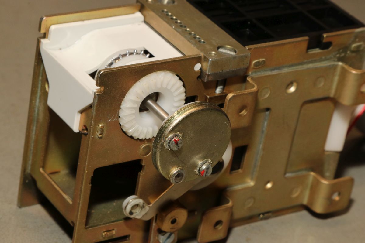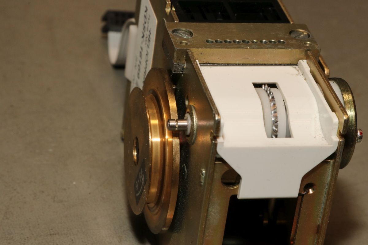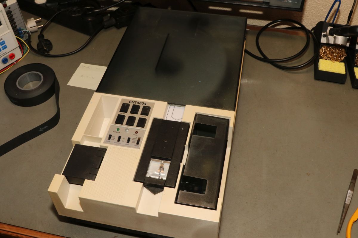 04.03.2026 {GNT 4604} Ab und zu digitalisiere ich mal CNC-Lochstreifen. Mein Mittel der Wahl dazu ist ein GNT4604, relativ modern, leicht, schnell und noch ganz gut verfügbar. Bei dem Versuch, Lochstreifen für den KIM-1 zu stanzen, musste ich leider feststellen, dass mein Gerät keinen Streifenvorschub mehr praktizieren wollte. Schmierung, Reinigung und leichteres Papier haben alles nichts gebracht - da bleibt mir nur die Obduktion. Haben ist das neue Brauchen! Gut, wenn man einfach ein Ersatzgerät hervorziehen kann. Das Ersatzgerät hat zwar die gleiche Bezeichnung, bietet aber geringfügig andere Einstellmöglichkeiten. Die 9600Baud-Option ist hier nicht vorhanden. Hier hat einer der Schiebeschalter noch eine vierte Stellung: Weitere Einstellungen lassen sich über einen DIP-Schalter auf der Geräteunterseite vornehmen: Der Stanzer/Leser lässt sich sehr leicht demontieren: die Bodenwanne wird von unverlierbaren Schrauben gehalten. Der Stanzer ist eine kompakte Einheit, die von einem Haltebügel mit drehbaren Gummischeiben geklemmt wird. Einfacher demontieren geht nicht! Der Antrieb erfolgt über einen separaten Motor mit dickem Gummiriemen. Hier ist nichts porös, klebrig oder ausgeleiert. Der Stanzer kann vorsichtig nach oben herausgezogen werden. Zwischendurch können wir uns einen Blick auf die Elektronik gönnen. Der Rechenknecht: ein 8048 Microcontroller. Die Firmware von Helioprint ist in einem kleinen EPROM untergebracht. Hochauflösend - die ganze Platine: Das iat alles sehr servicefreundlich untergebracht! Der Antriebsmotor für den Stanzer wird von vier Gummipuffern gehalten - das ist die einzige Schwachstelle dieses Gerätes. Ich hatte bereits ein Gerät, bei dem die steinharten Puffer ersetzt werden mussten. Diese hier sind noch perfekt erhalten - trotzdem stanzt der Stanzer nicht richtig! Die obere Abdeckung wird von vier Schrauben gehalten, eine davon befindet sich unter dem Auslösemagneten... Dieser ist servicefreundlich nur eingeclipst... Man kann ihn einfach demontieren, dann kommt man an die letzte Schraube ran. Die obere Abdeckung kann man so zur Seite legen. Den Auslösemagnet habe ich wieder montiert, um die Funktion verstehen zu können... Bei jeder Antriebsscheibenumdrehung wobbelt der goldene Teller eine Zahnbreite hin und her. Wenn der Auslösemagnet nicht auslöst, passiert dabei garnichts. Wenn der Auslösemagnet anzieht, wird ein Mitnehmerblech auf das Vorschubrad gedrückt und dieses transportiert das Papier eine Lochreihe weiter. Der Mitnehmer wird von einer Feder und einem Sicherungsring gehalten. Das lässt sich leicht demontieren. Dann kann man die Mitnehmerglocke auf der anderen Seite herausziehen. Das geht ganz ohne Werkzeug. Die Zahnscheibe für den Antrieb sieht gut aus. Das Mitnehmerblech hingegen ist gebrochen, die Nase, die vom Auslösemagneten angehoben wird, ist ab... Kein Wunder, dass das nicht mehr funktioniert hat! Im Moment sehe ich noch nicht, wie ich bei so einem filigranen Federblech irgendetwas reparieren könnte... Da bleibt mir nur das Ersatzgerät - Haben ist eben doch manchmal besser als Brauchen! |