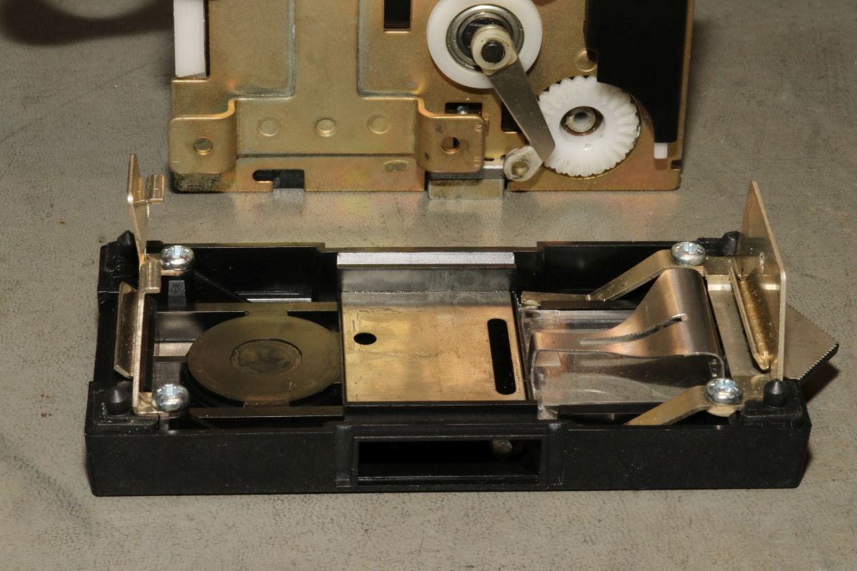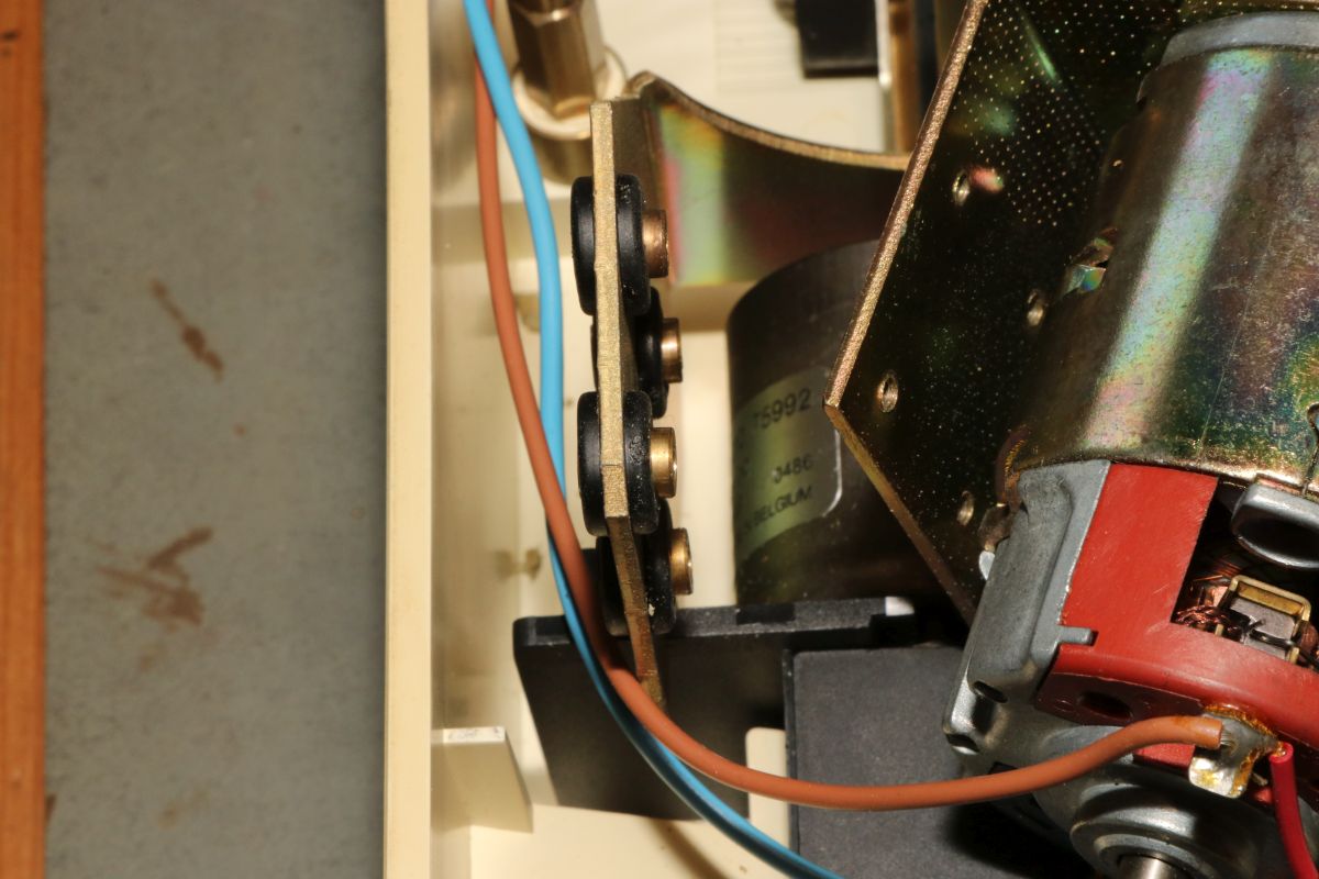 04.03.2026 {GNT 4604} Ab und zu digitalisiere ich mal CNC-Lochstreifen. Mein Mittel der Wahl dazu ist ein GNT4604, relativ modern, leicht, schnell und noch ganz gut verfügbar. Bei dem Versuch, Lochstreifen für den KIM-1 zu stanzen, musste ich leider feststellen, dass mein Gerät keinen Streifenvorschub mehr praktizieren wollte. Schmierung, Reinigung und leichteres Papier haben alles nichts gebracht - da bleibt mir nur die Obduktion. Haben ist das neue Brauchen! Gut, wenn man einfach ein Ersatzgerät hervorziehen kann. Das Ersatzgerät hat zwar die gleiche Bezeichnung, bietet aber geringfügig andere Einstellmöglichkeiten. Die 9600Baud-Option ist hier nicht vorhanden. Hier hat einer der Schiebeschalter noch eine vierte Stellung: Weitere Einstellungen lassen sich über einen DIP-Schalter auf der Geräteunterseite vornehmen: Der Stanzer/Leser lässt sich sehr leicht demontieren: die Bodenwanne wird von unverlierbaren Schrauben gehalten. Der Stanzer ist eine kompakte Einheit, die von einem Haltebügel mit drehbaren Gummischeiben geklemmt wird. Einfacher demontieren geht nicht! Der Antrieb erfolgt über einen separaten Motor mit dickem Gummiriemen. Hier ist nichts porös, klebrig oder ausgeleiert. Der Stanzer kann vorsichtig nach oben herausgezogen werden. Zwischendurch können wir uns einen Blick auf die Elektronik gönnen. Der Rechenknecht: ein 8048 Microcontroller. Die Firmware von Helioprint ist in einem kleinen EPROM untergebracht. Hochauflösend - die ganze Platine: Das iat alles sehr servicefreundlich untergebracht! Der Antriebsmotor für den Stanzer wird von vier Gummipuffern gehalten - das ist die einzige Schwachstelle dieses Gerätes. Ich hatte bereits ein Gerät, bei dem die steinharten Puffer ersetzt werden mussten. Diese hier sind noch perfekt erhalten - trotzdem stanzt der Stanzer nicht richtig! Die obere Abdeckung wird von vier Schrauben gehalten, eine davon befindet sich unter dem Auslösemagneten... Dieser ist servicefreundlich nur eingeclipst... Man kann ihn einfach demontieren, dann kommt man an die letzte Schraube ran. Die obere Abdeckung kann man so zur Seite legen. Den Auslösemagnet habe ich wieder montiert, um die Funktion verstehen zu können... Bei jeder Antriebsscheibenumdrehung wobbelt der goldene Teller eine Zahnbreite hin und her. Wenn der Auslösemagnet nicht auslöst, passiert dabei garnichts. Wenn der Auslösemagnet anzieht, wird ein Mitnehmerblech auf das Vorschubrad gedrückt und dieses transportiert das Papier eine Lochreihe weiter. Der Mitnehmer wird von einer Feder und einem Sicherungsring gehalten. Das lässt sich leicht demontieren. Dann kann man die Mitnehmerglocke auf der anderen Seite herausziehen. Das geht ganz ohne Werkzeug. Die Zahnscheibe für den Antrieb sieht gut aus. Das Mitnehmerblech hingegen ist gebrochen, die Nase, die vom Auslösemagneten angehoben wird, ist ab... Kein Wunder, dass das nicht mehr funktioniert hat! Im Moment sehe ich noch nicht, wie ich bei so einem filigranen Federblech irgendetwas reparieren könnte... Da bleibt mir nur das Ersatzgerät - Haben ist eben doch manchmal besser als Brauchen! {Mitnehmerblech} Im Forum wurde es heiß diskutiert - Ersatz oder neu fertigen lassen? Laserschneiden, löten oder dengeln? Das Mitnehmerblech ist nicht trivial: aus 0,5mm hartem Federstahlblech, mit diversen Bohrungen und Prägungen... Die Größe ist auch nicht gerade handarbeitsfreundlich... Selbst die Bohrung für die Führungshülse ist gesenkt. Ein einfaches lasergeschnittenes Blechteil reicht hier nicht. Alternativ könnte man das Teil vielleicht mit Silberlot hartlöten, aber wie lange würde das halten? Bei jeder Lochreihe schlägt der Auslöser von unten gegen die Nase... Hier noch mal die Abmaße. Beim mehrfachen Ausbau der Stanzereinheit ist mir übrigens aufgefallen, dass sie sich ganz einfach entriegeln und herausnehmen lässt, ohne die Schrauben zu lösen... Zielführender als die Diskussionen über Blechbearbeitung war ein sehr freundlicher Forist, der mir ein gebrauchtes Ersatzteil zukommen ließ. Vielen herzlichen Dank dafür! Im Styroporkästchen verbirgt sich ein fast baugleicher Stanzer, der sich nur durch die Länge des Flachbandkabels unterscheidet. Die Nase sieht gebraucht aus - aber sie ist noch dran! Innerhalb kürzester Zeit macht mein GNT 4604 wieder, was er soll: Löcher. Ich bin begeistert! {Vibrationsdämpfer} Und dann war da noch ein Problem, welches alle GNT früher oder später betrifft: der Motor für die Stanzereinheit ist vibrationsdämpfend aufgehängt. Die Gummis werden geradezu matschig oder im anderen Extrem steinhart, dann steht der Motor schräg und der Riemen hüpft von der Riemenscheibe. Der GNT merkt das und es geht eine Error-LED an. Die Lösung: Kabeldurchführungstüllen! Bis auf die Dicke passen alle Maße. Die Tüllen werden in das Blech gedrückt. Dann kommt die Messinghülse in die Tülle. Die Hülse ist erwartungsgemäß zu lang... Dafür gibt es scharfe Cuttermesser. Zwei weitere Tüllen werden ihres Mittelsteges beraubt. Die entstehenden Scheiben werden zusätzlich auf die Messinghülse geschoben. Dann kann der Motor wieder angeschraubt werden. Passt perfekt! Sollte der Antriebsriemen schon etwas gelängt sein, so könnte man die Zusatzscheiben auch außen auf die Hülsen schieben. |
