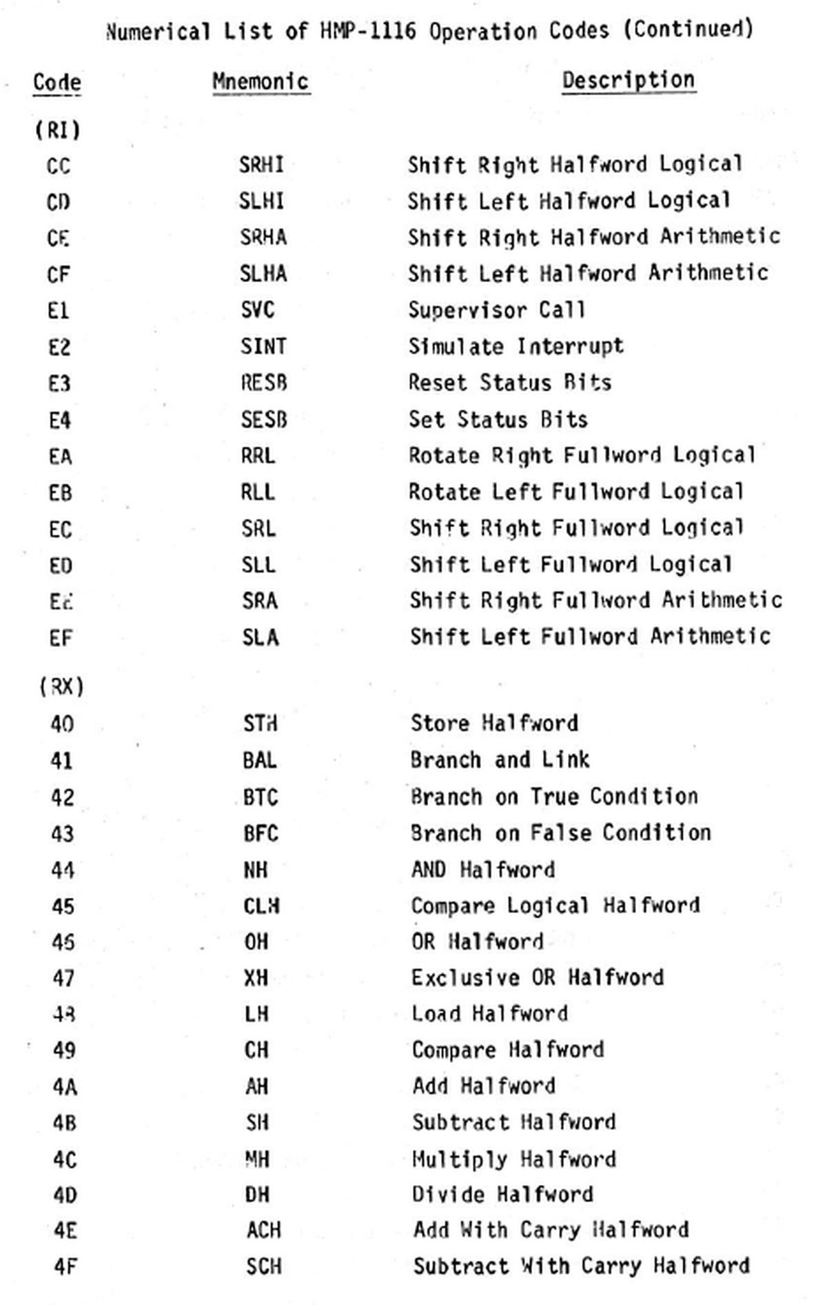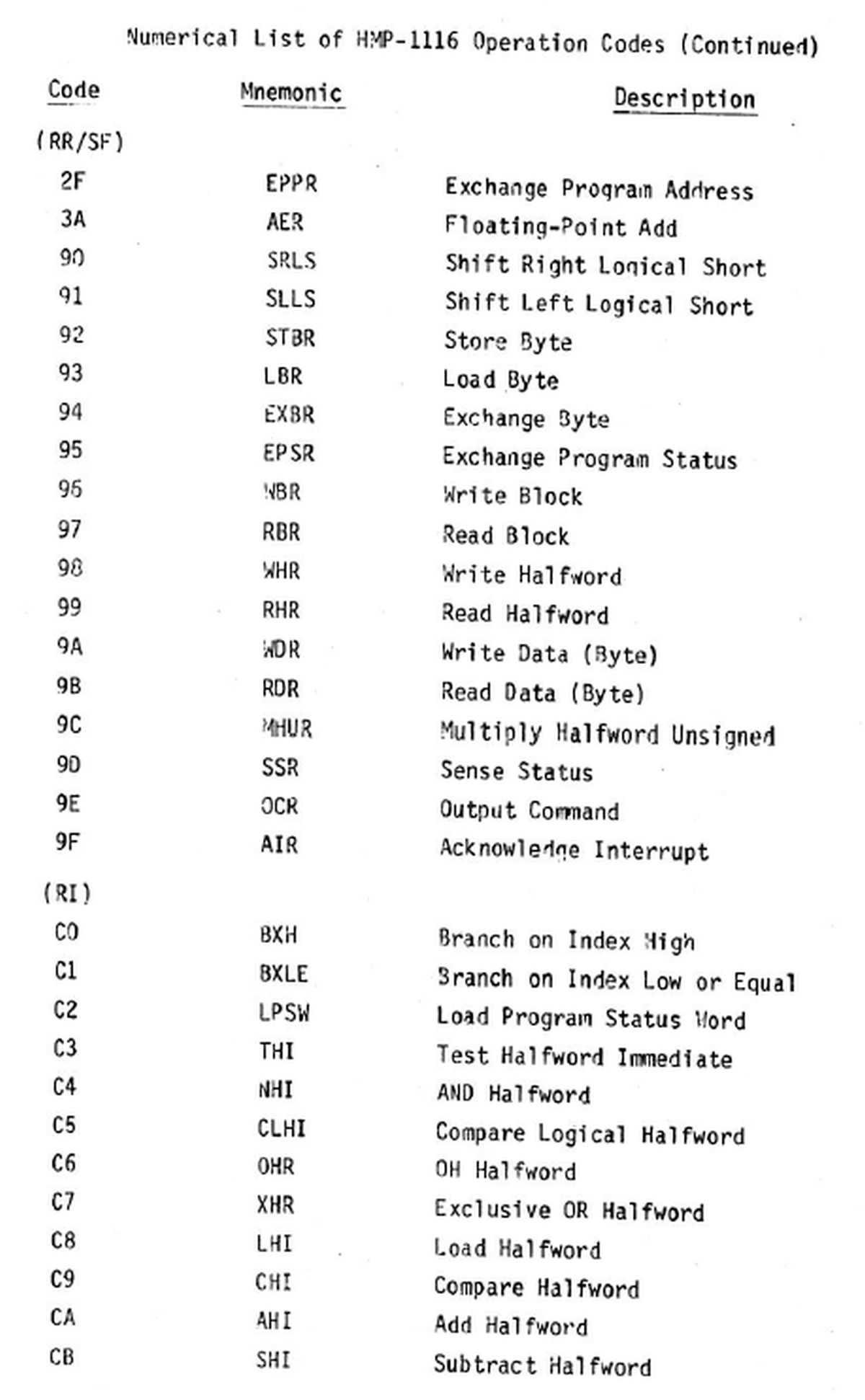 21.01.2026 {HUGHES HMP-1116 Bit Slice Microcomputer - die Dokumentation} Andrew Carol hat dereinst in den U.S.A. selber an diesem Rechner gelernt und mir dankenswerter Weise die technichen und die Schulungsunterlagen eingescannt. Vielen herzlichen Dank dafür! Ich denke, nach so langer Zeit handelt es sich hier nicht mehr um militärisch schützenswerte Geheimnisse, zumal ja die eigentlichen Anwendungsprogramme weder beschrieben noch auf dem Rechner gespeichert sind. Die Titelseiten sehen trotzdem respekteinflößend aus! Der Rechner ist auf den ersten Blick simpel aufgebaut. Cordic ist übrigens ein einfacher Algorithmus, um diverse mathematische Funktionen zu iterieren - unter anderem Trigonometrie. Dafür gibt es hier eine eigene Karte, die in bipolaren Proms die Konstanten enthält. Die groben Daten des Rechners aus Sicht des Benutzers: Der Prozessor hingegen ist deutlich komplexer aufgebaut - die Bit-Slice-Bausteine AM2901 kümmern sich eigentlich nur um Logik und Register. Die eigentliche Prozessorfunktion wird in Microcode abgebildet. Der Prozessor hat 5 Kategorien Microcodebefehle: In Summe sind nur 16 Befehle vorhanden, deren Funktion aber stark von den entsprechenden Parametern der übrigen Bits abhängt. Alle Funktionen sind über Hardware (Look-Up-PROMs, Decoder-PROMs, Multiplexer) gesteuert. Fünf Bit der Micro Instruction (AIC) steuern zum Beispiel die logische Operation, die von den ALUs ausgeführt werden soll. Der User hat allerdings eine große Zahl (max. 256) von teils sehr komplexen Funktionen als Befehlssatz zur Verfügung. Hier ist alles drin, von der Registerschieberei bis zur Division. Wie funktioniert das? In einem Satz bipolarer PROMs (Decode ROM) befindet sich eine hart verdrahtete Sprungtabelle, die den User-Opcode in eine Anfangsadresse für ein Micro Instruction Programm übersetzt. Opcode 0x0E (ACHR - Add WITH CARRY HALFWORD) verweist zum Beispiel auf Einsprungadresse 0x139 im Microcode-ROM. Das eigentliche Micro Instruction Programm ist hier recht kurz, eine Division geht dann schon mal über ein paar Seiten Listing... Wenn der Microcode ausgeführt wurde, ist praktisch der eine User-Assemblercode abgearbeitet worden. Hier versteckt sich das Instruction Decode ROM. Will man Befehle ändern, erweitern oder ergänzen, so muss man nur die bipolaren PROMs neu programmieren und erhält einen neuen Prozessor. Eine faszinierende Technologie, die sich so ähnlich auch in modernen Prozessoren wiederfindet! Und nein, ich werde jetzt nicht den Rechner in Betrieb nehmen und ein "Hello World!" für H1116 in Assembler programmieren! Hier befinden sich die Schulungsunterlagen zum Hughes HMP-1116 - seltene Stücke der Computer Archaeologie!