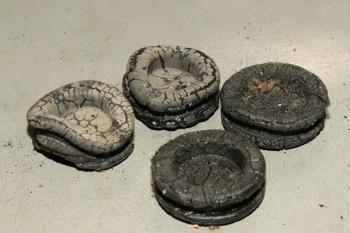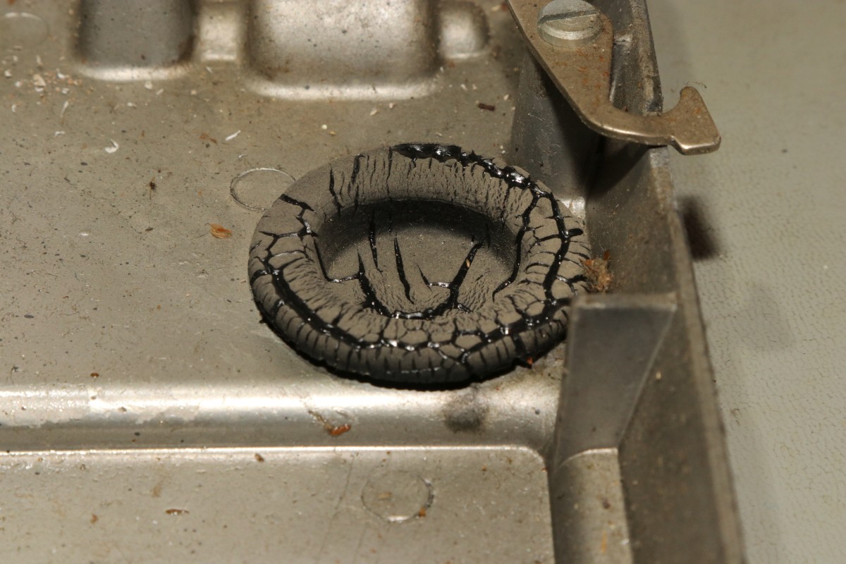 {Auf neuen Füßen steht sich's gut!} Also erst mal musste das Netzfilter repariert werden - aber dann ging es zum Podologen. Die vier selbstgegossenen Gehäusefüße passen sich perfekt an. Die unebene Gussoberfläche verschwindet im Gehäuseinneren. So steht die Maschine wieder perfekt! |