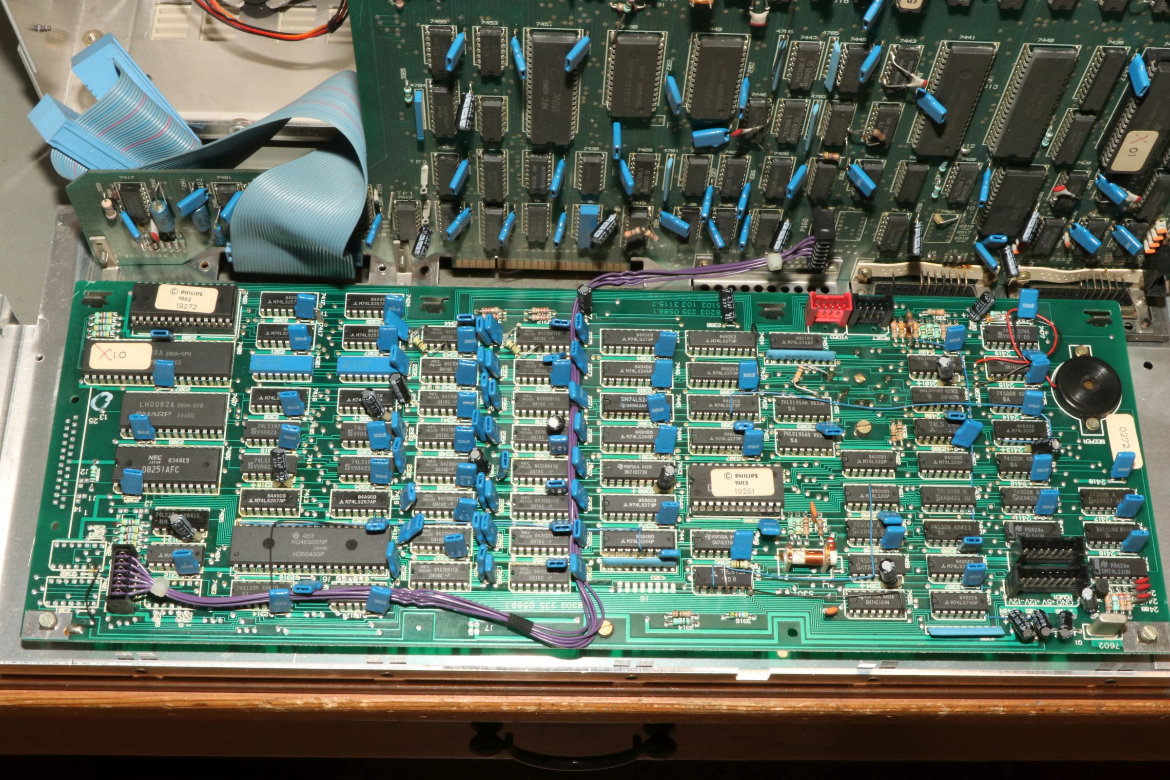 04.04.2026 {Philips P2000C - der portable CP/M Rechner} Ein sehr freundlicher guter Bekannter hat mir einen Rechner vorbeigebracht, der zwar problemlos läuft, aber nicht mehr von Diskette lesen will. Beide Laufwerke defekt? Unwahrscheinlich... Laufwerkscontroller defekt? Möglich. Die Geschichte ist einfacher, als man denkt. Der Philips P2000C ist ein super verarbeiteter CP/M-Rechner von 1983, der sich leider nicht recht durchsetzen konnte. Während die Vorläufer P2000M und P2000T noch Desktop-Rechner mit sehr geringer RAM-Ausstattung waren, protzte der P2000C mit dem Prädikat "Portable" - witzig. Immerhin ist der eingebaute 9" Bildschirm eine echte Augenweide und die eingebauten zwei Floppies - wenn sie funktionieren - sind auch sehr praktisch. Der Vorbesitzer hat mir bereits die Mühe abgenommen, das Netzteil zu reparieren. Löblich! Was hätte es auch anderes sein können? RIFA. Die Diskettenlaufwerke lesen beide nicht. Immerhin starten sie und versuchen den Boot-Sektor zu lesen, so ganz kaputt kann die Ansteuerung nicht sein. Gut, dass ich mir vor einiger Zeit mal ein Disketten-Reinigungsset besorgt hatte. Selbst die Flasche Alkohol ist noch brauchbar gewesen. Einige Tropfen und ein paar Umdrehungen später: Das war ja einfach, dann können wir auch gleich noch einen Blick in den Rechner werfen. Diese tragbare Kiste könnte viel leichter sein, wenn man nicht überall massive Alu-Bleche verbaut hätte. Heutige Industrierechner sind oft weniger stabil. NEC µPD765AC - der Floppy-Controller unseres Vertrauens. Anfrage des Philips Marketings an das Philips Entwicklungsbüro: "Bauen Sie ein Gerät mit der maximalen Anzahl an blauen 100nF Keramikkondensatoren. Funktion egal." Die alten 5 1/4" Floppies... hier die Grundversion mit 160k. Einseitig. Das wird nichts mit der MP3-Sammlung. Die Stecker sind alle unterschiedlich, da kann man fast nichts falsch machen. Die lange Steckerleiste ist für eine Erweiterungskarte, wenn ich nicht falsch liege, dann gab es auch eine 8086-Karte, um DOS laufen lassen zu können. Z80 CPU und Grafikprozessor HD46505SP. Noch eine Z80-CPU und 64k RAM. Viel Aufwand für das Signal-Timing... Der Monitor sieht aus wie neu - die Elkos laufen noch alle ohne Auffälligkeiten... Die solide Rückseite ohne Plastikabdeckung: Hier ist genau aufgelistet, was drinnen ist.. Auf der Unterseite versteckt sich noch ein Aufstellbügel. Damit kann man dann die grandios stabile Tastatur etwas unter das Gerät schieben. Dabei fällt auch das Spiralkabel ins Auge, dessen Isolierung komplett abgefallen ist. Das passiert bei allen P2000C. Alles in allem: ein tolles Gerät, um CP/M beim Arbeiten zuzusehen! Genauere Infos und Downloadmöglichkeiten für die CP/M-Software finden sich in diesem Artikel. |