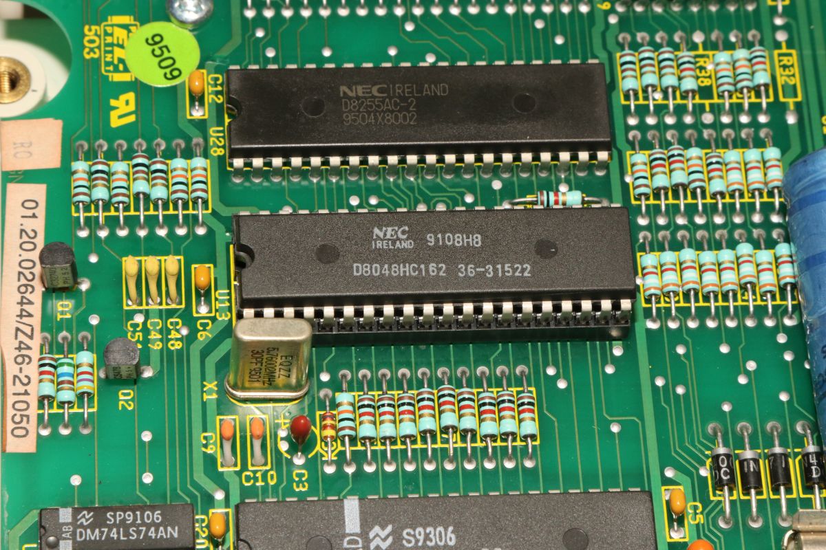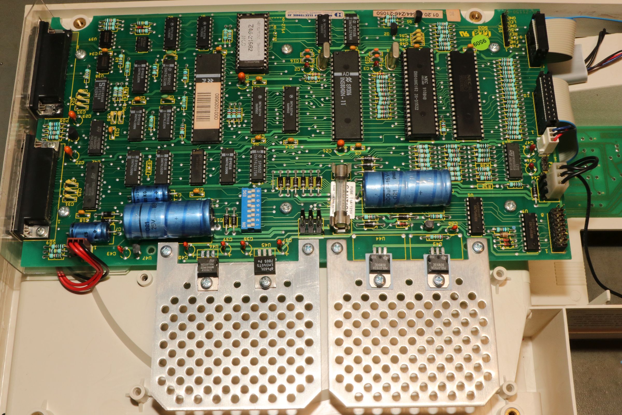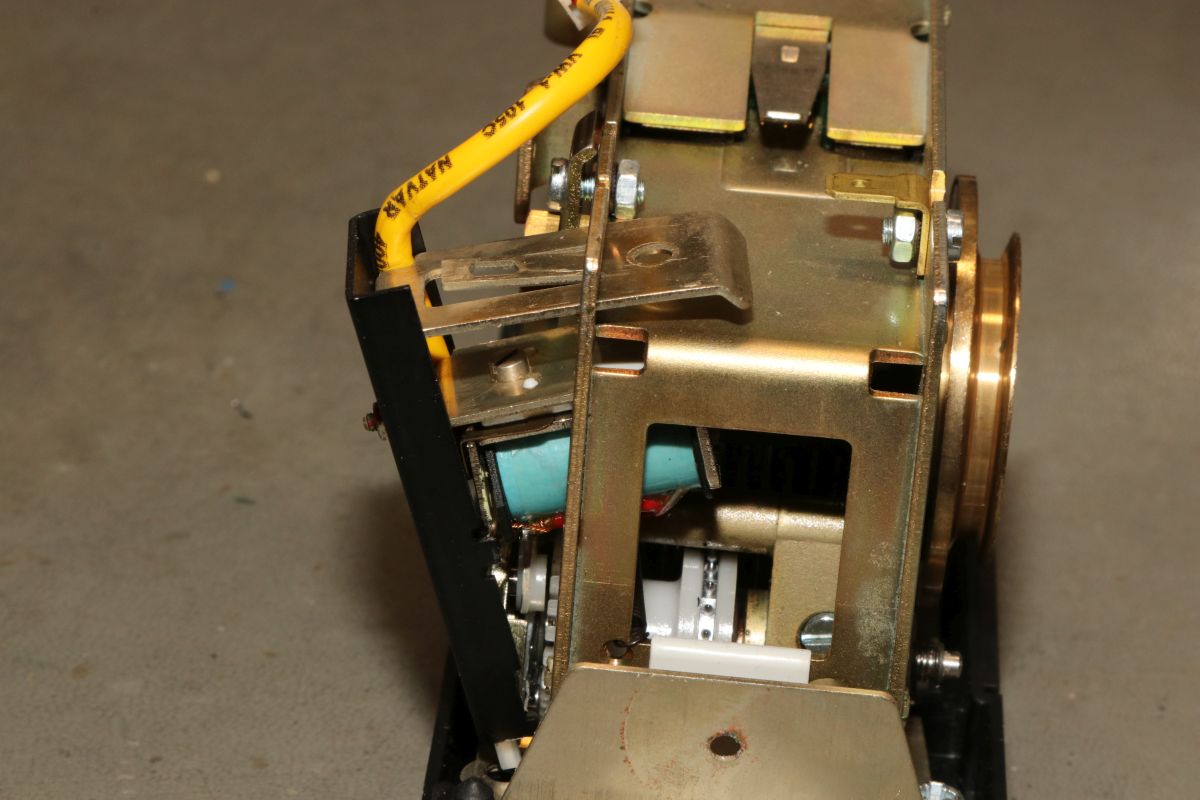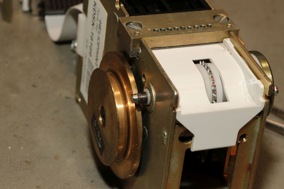 04.03.2026 {GNT 4604} Ab und zu digitalisiere ich mal CNC-Lochstreifen. Mein Mittel der Wahl dazu ist ein GNT4604, relativ modern, leicht, schnell und noch ganz gut verfügbar. Bei dem Versuch, Lochstreifen für den KIM-1 zu stanzen, musste ich leider feststellen, dass mein Gerät keinen Streifenvorschub mehr praktizieren wollte. Schmierung, Reinigung und leichteres Papier haben alles nichts gebracht - da bleibt mir nur die Obduktion. Haben ist das neue Brauchen! Gut, wenn man einfach ein Ersatzgerät hervorziehen kann. Das Ersatzgerät hat zwar die gleiche Bezeichnung, bietet aber geringfügig andere Einstellmöglichkeiten. Die 9600Baud-Option ist hier nicht vorhanden. Hier hat einer der Schiebeschalter noch eine vierte Stellung: Weitere Einstellungen lassen sich über einen DIP-Schalter auf der Geräteunterseite vornehmen: Der Stanzer/Leser lässt sich sehr leicht demontieren: die Bodenwanne wird von unverlierbaren Schrauben gehalten. Der Stanzer ist eine kompakte Einheit, die von einem Haltebügel mit drehbaren Gummischeiben geklemmt wird. Einfacher demontieren geht nicht! Der Antrieb erfolgt über einen separaten Motor mit dickem Gummiriemen. Hier ist nichts porös, klebrig oder ausgeleiert. Der Stanzer kann vorsichtig nach oben herausgezogen werden. Zwischendurch können wir uns einen Blick auf die Elektronik gönnen. Der Rechenknecht: ein 8048 Microcontroller. Die Firmware von Helioprint ist in einem kleinen EPROM untergebracht. Hochauflösend - die ganze Platine: Das iat alles sehr servicefreundlich untergebracht! Der Antriebsmotor für den Stanzer wird von vier Gummipuffern gehalten - das ist die einzige Schwachstelle dieses Gerätes. Ich hatte bereits ein Gerät, bei dem die steinharten Puffer ersetzt werden mussten. Diese hier sind noch perfekt erhalten - trotzdem stanzt der Stanzer nicht richtig! Die obere Abdeckung wird von vier Schrauben gehalten, eine davon befindet sich unter dem Auslösemagneten... Dieser ist servicefreundlich nur eingeclipst... Man kann ihn einfach demontieren, dann kommt man an die letzte Schraube ran. Die obere Abdeckung kann man so zur Seite legen. Den Auslösemagnet habe ich wieder montiert, um die Funktion verstehen zu können... Bei jeder Antriebsscheibenumdrehung wobbelt der goldene Teller eine Zahnbreite hin und her. Wenn der Auslösemagnet nicht auslöst, passiert dabei garnichts. Wenn der Auslösemagnet anzieht, wird ein Mitnehmerblech auf das Vorschubrad gedrückt und dieses transportiert das Papier eine Lochreihe weiter. Der Mitnehmer wird von einer Feder und einem Sicherungsring gehalten. Das lässt sich leicht demontieren. Dann kann man die Mitnehmerglocke auf der anderen Seite herausziehen. Das geht ganz ohne Werkzeug. Die Zahnscheibe für den Antrieb sieht gut aus. Das Mitnehmerblech hingegen ist gebrochen, die Nase, die vom Auslösemagneten angehoben wird, ist ab... Kein Wunder, dass das nicht mehr funktioniert hat! Im Moment sehe ich noch nicht, wie ich bei so einem filigranen Federblech irgendetwas reparieren könnte... Da bleibt mir nur das Ersatzgerät - Haben ist eben doch manchmal besser als Brauchen! |
