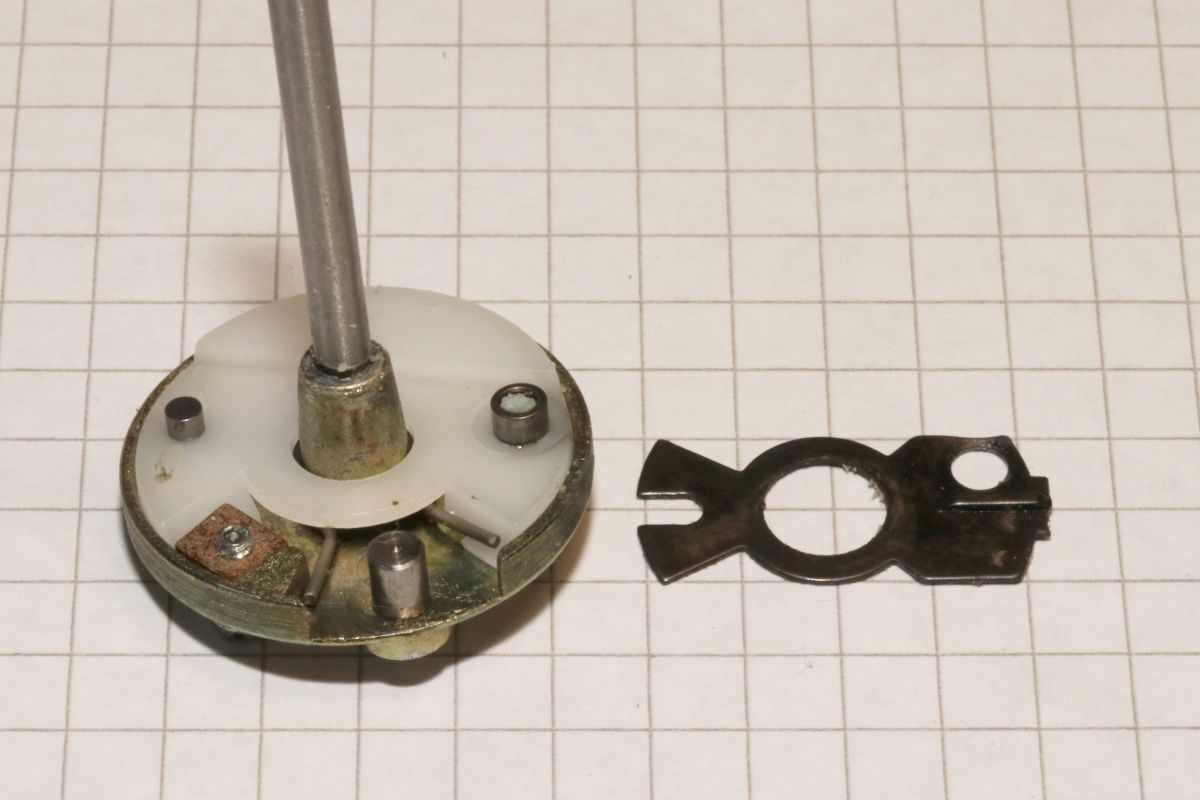 04.03.2026 {GNT 4604} Ab und zu digitalisiere ich mal CNC-Lochstreifen. Mein Mittel der Wahl dazu ist ein GNT4604, relativ modern, leicht, schnell und noch ganz gut verfügbar. Bei dem Versuch, Lochstreifen für den KIM-1 zu stanzen, musste ich leider feststellen, dass mein Gerät keinen Streifenvorschub mehr praktizieren wollte. Schmierung, Reinigung und leichteres Papier haben alles nichts gebracht - da bleibt mir nur die Obduktion. Haben ist das neue Brauchen! Gut, wenn man einfach ein Ersatzgerät hervorziehen kann. Das Ersatzgerät hat zwar die gleiche Bezeichnung, bietet aber geringfügig andere Einstellmöglichkeiten. Die 9600Baud-Option ist hier nicht vorhanden. Hier hat einer der Schiebeschalter noch eine vierte Stellung: Weitere Einstellungen lassen sich über einen DIP-Schalter auf der Geräteunterseite vornehmen: Der Stanzer/Leser lässt sich sehr leicht demontieren: die Bodenwanne wird von unverlierbaren Schrauben gehalten. Der Stanzer ist eine kompakte Einheit, die von einem Haltebügel mit drehbaren Gummischeiben geklemmt wird. Einfacher demontieren geht nicht! Der Antrieb erfolgt über einen separaten Motor mit dickem Gummiriemen. Hier ist nichts porös, klebrig oder ausgeleiert. Der Stanzer kann vorsichtig nach oben herausgezogen werden. Zwischendurch können wir uns einen Blick auf die Elektronik gönnen. Der Rechenknecht: ein 8048 Microcontroller. Die Firmware von Helioprint ist in einem kleinen EPROM untergebracht. Hochauflösend - die ganze Platine: Das iat alles sehr servicefreundlich untergebracht! Der Antriebsmotor für den Stanzer wird von vier Gummipuffern gehalten - das ist die einzige Schwachstelle dieses Gerätes. Ich hatte bereits ein Gerät, bei dem die steinharten Puffer ersetzt werden mussten. Diese hier sind noch perfekt erhalten - trotzdem stanzt der Stanzer nicht richtig! Die obere Abdeckung wird von vier Schrauben gehalten, eine davon befindet sich unter dem Auslösemagneten... Dieser ist servicefreundlich nur eingeclipst... Man kann ihn einfach demontieren, dann kommt man an die letzte Schraube ran. Die obere Abdeckung kann man so zur Seite legen. Den Auslösemagnet habe ich wieder montiert, um die Funktion verstehen zu können... Bei jeder Antriebsscheibenumdrehung wobbelt der goldene Teller eine Zahnbreite hin und her. Wenn der Auslösemagnet nicht auslöst, passiert dabei garnichts. Wenn der Auslösemagnet anzieht, wird ein Mitnehmerblech auf das Vorschubrad gedrückt und dieses transportiert das Papier eine Lochreihe weiter. Der Mitnehmer wird von einer Feder und einem Sicherungsring gehalten. Das lässt sich leicht demontieren. Dann kann man die Mitnehmerglocke auf der anderen Seite herausziehen. Das geht ganz ohne Werkzeug. Die Zahnscheibe für den Antrieb sieht gut aus. Das Mitnehmerblech hingegen ist gebrochen, die Nase, die vom Auslösemagneten angehoben wird, ist ab... Kein Wunder, dass das nicht mehr funktioniert hat! Im Moment sehe ich noch nicht, wie ich bei so einem filigranen Federblech irgendetwas reparieren könnte... Da bleibt mir nur das Ersatzgerät - Haben ist eben doch manchmal besser als Brauchen! {Mitnehmerblech} Im Forum wurde es heiß diskutiert - Ersatz oder neu fertigen lassen? Laserschneiden, löten oder dengeln? Das Mitnehmerblech ist nicht trivial: aus 0,5mm hartem Federstahlblech, mit diversen Bohrungen und Prägungen... Die Größe ist auch nicht gerade handarbeitsfreundlich... Selbst die Bohrung für die Führungshülse ist gesenkt. Ein einfaches lasergeschnittenes Blechteil reicht hier nicht. Alternativ könnte man das Teil vielleicht mit Silberlot hartlöten, aber wie lange würde das halten? Bei jeder Lochreihe schlägt der Auslöser von unten gegen die Nase... Hier noch mal die Abmaße. Beim mehrfachen Ausbau der Stanzereinheit ist mir übrigens aufgefallen, dass sie sich ganz einfach entriegeln und herausnehmen lässt, ohne die Schrauben zu lösen... Zielführender als die Diskussionen über Blechbearbeitung war ein sehr freundlicher Forist, der mir ein gebrauchtes Ersatzteil zukommen ließ. Vielen herzlichen Dank dafür! Im Styroporkästchen verbirgt sich ein fast baugleicher Stanzer, der sich nur durch die Länge des Flachbandkabels unterscheidet. Die Nase sieht gebraucht aus - aber sie ist noch dran! Innerhalb kürzester Zeit macht mein GNT 4604 wieder, was er soll: Löcher. Ich bin begeistert! {Vibrationsdämpfer} Und dann war da noch ein Problem, welches alle GNT früher oder später betrifft: der Motor für die Stanzereinheit ist vibrationsdämpfend aufgehängt. Die Gummis werden geradezu matschig oder im anderen Extrem steinhart, dann steht der Motor schräg und der Riemen hüpft von der Riemenscheibe. Der GNT merkt das und es geht eine Error-LED an. Die Lösung: Kabeldurchführungstüllen! Bis auf die Dicke passen alle Maße. Die Tüllen werden in das Blech gedrückt. Dann kommt die Messinghülse in die Tülle. Die Hülse ist erwartungsgemäß zu lang... Dafür gibt es scharfe Cuttermesser. Zwei weitere Tüllen werden ihres Mittelsteges beraubt. Die entstehenden Scheiben werden zusätzlich auf die Messinghülse geschoben. Dann kann der Motor wieder angeschraubt werden. Passt perfekt! Sollte der Antriebsriemen schon etwas gelängt sein, so könnte man die Zusatzscheiben auch außen auf die Hülsen schieben. |